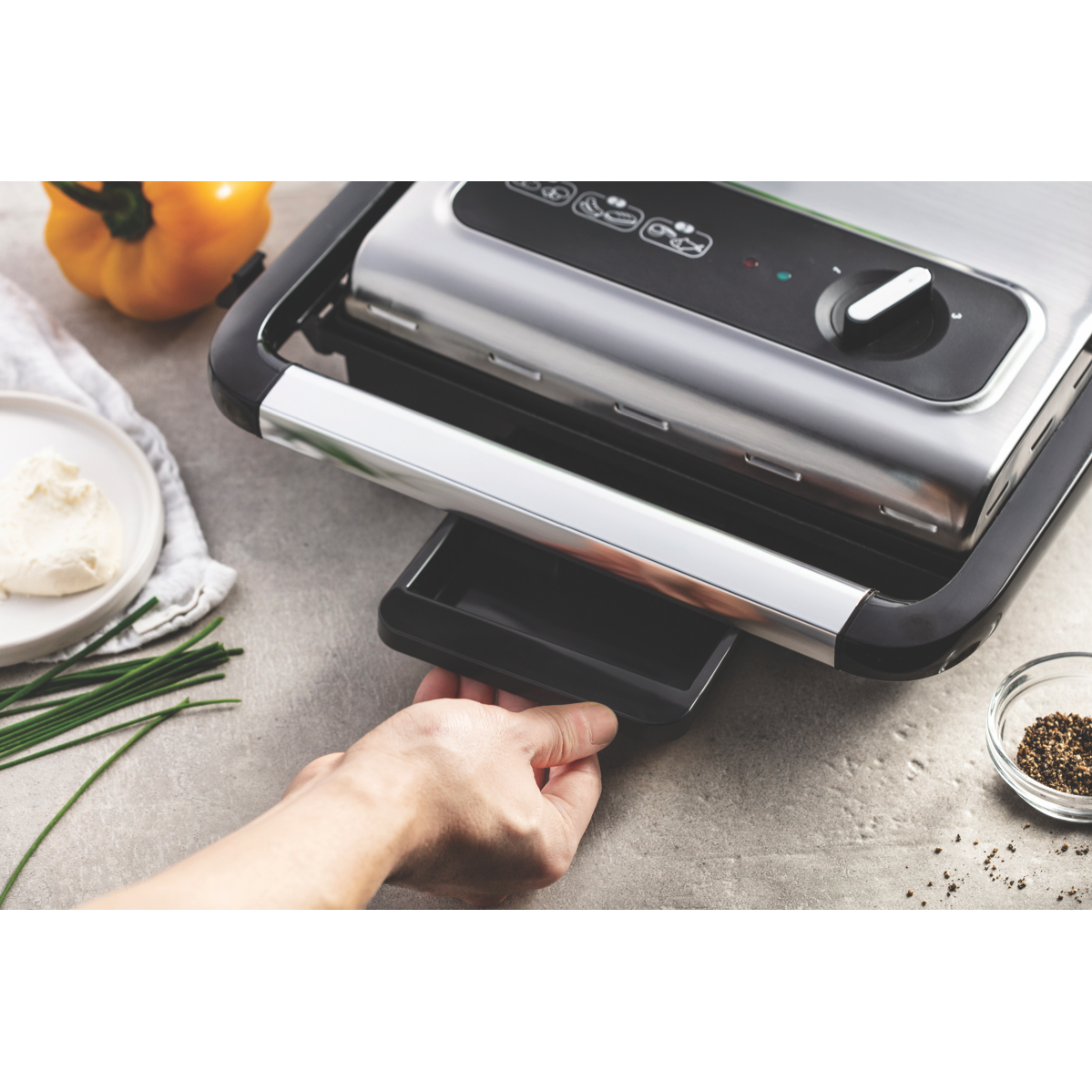 Additional Features Genuine panini handle, Vertical storage with safety lock, Drip tray