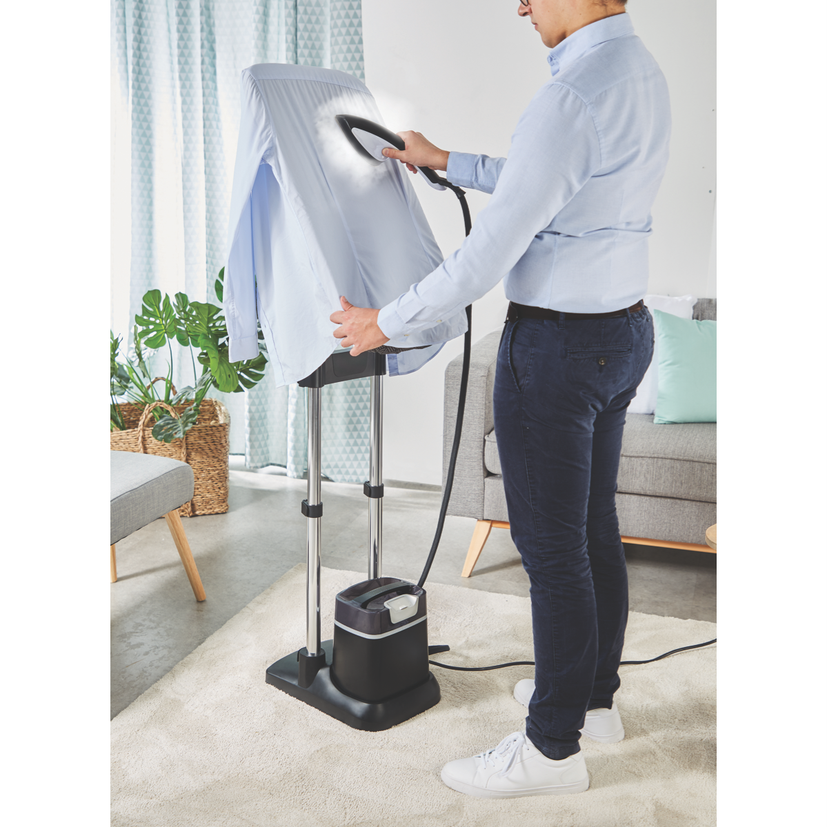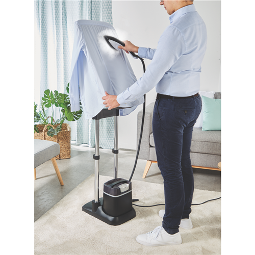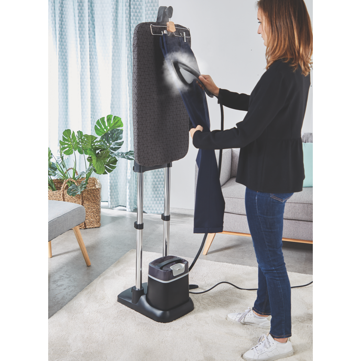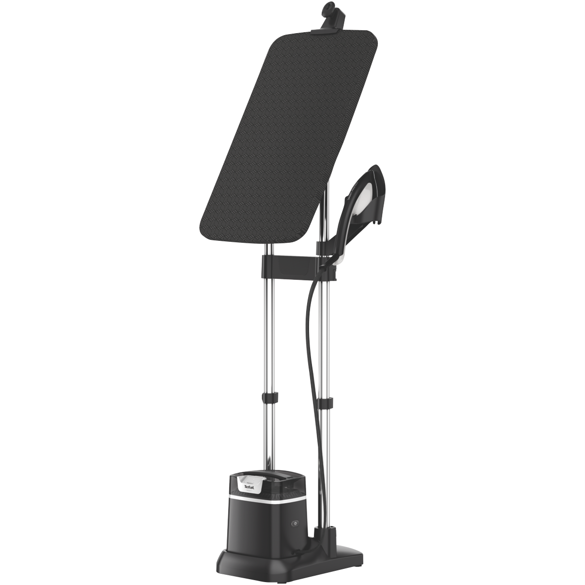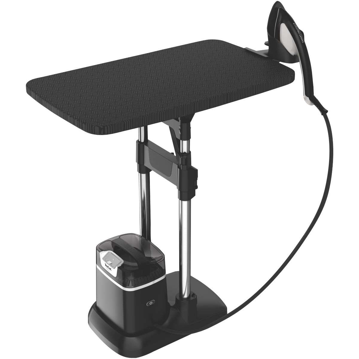 With its powerful 2400 watt motor and 70 second heat up time the Tefal IXEO Plus All In One Solution steamer is engineered to refresh garments and sanitize surfaces in a flash. This versatile garment steamer features a durable stainless steel soleplate and an integrated Smart Board with 3 positions allowing you to steam hanging clothes or flat surfaces with ease. The 35g/minute continuous steam output and 90g/minute steam shot provide intense steam penetration to remove wrinkles and odors from fabrics. Plus the integrated sanitize function eliminates 99.9% of bacteria and germs without chemicals. With a generous 1 litre removable water tank 5 bar pump pressure and auto shut off for safety this 2 year warranted steamer provides up to 60 minutes of steam time per fill. Tackle wrinkles and sanitize in style with the power and convenience of the Tefal IXEO Plus. The manufacturer's part number for this product is QT1510. Check out this innovative steam station from Tefal today