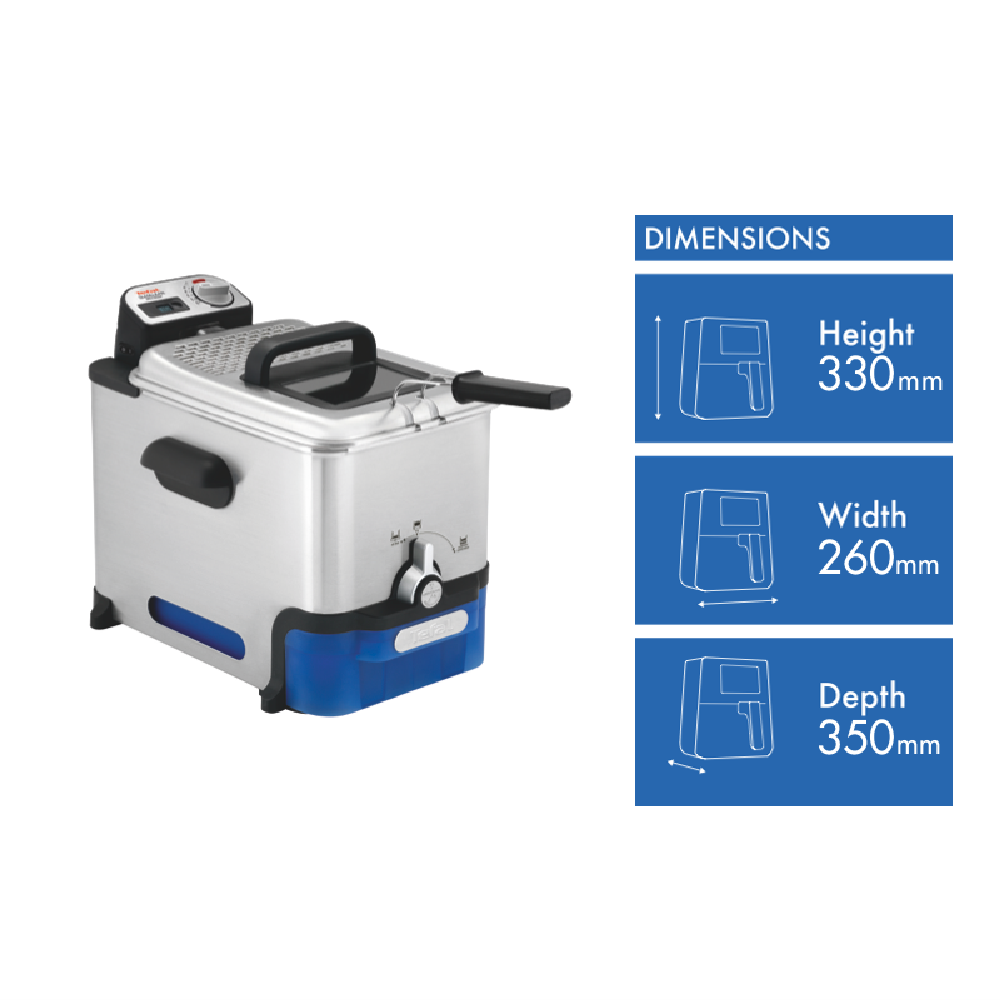 • Temperature adjusts from 150%26#176;C to 190%26#176;C, immersed element, dishwasher safe parts