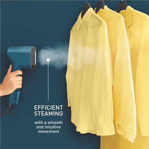 With the Tefal Pure Pop Garment Steamer in marine blue you can remove wrinkles from your clothing simply and quickly. This ultra-compact garment steamer has a 15 second heat-up time so you can start steaming right away. The innovative reversible pad system allows you to choose between lint removal and velvet sides suitable for all fabrics. With a powerful 1300 watt motor the steamer delivers up to 20 grams of steam per minute to relax wrinkles. The 70ml removable water tank is easy to refill. Weighing just 700 grams this portable garment steamer is perfect for travel. Tefal provides a 2 year warranty for peace of mind. Give your clothes a quick touch up and look crisp anywhere with the Tefal DT2020 Pure Pop Garment Steamer. Add it to your cart today for easy effective steaming.