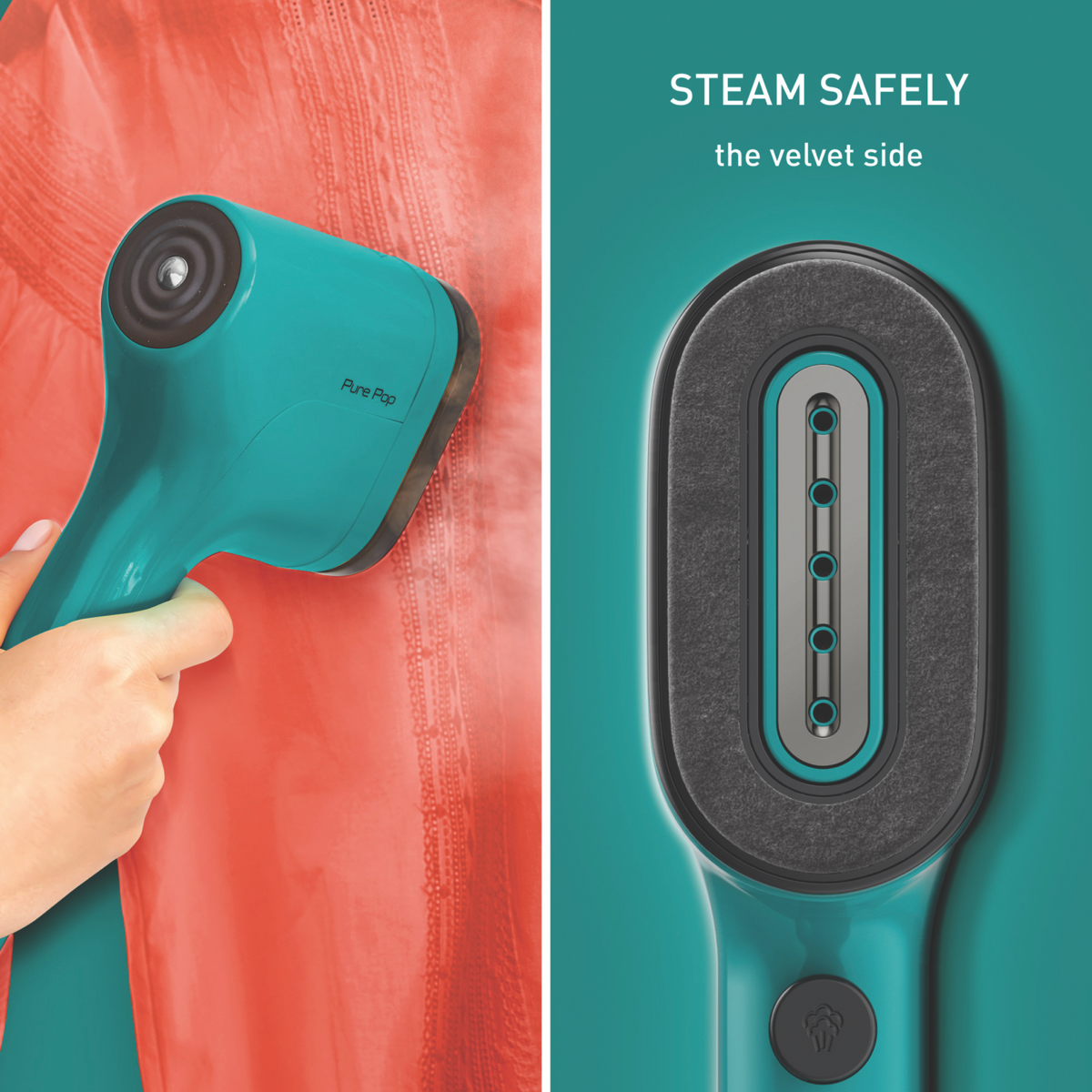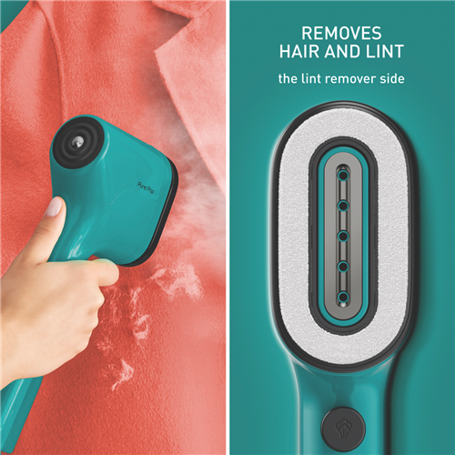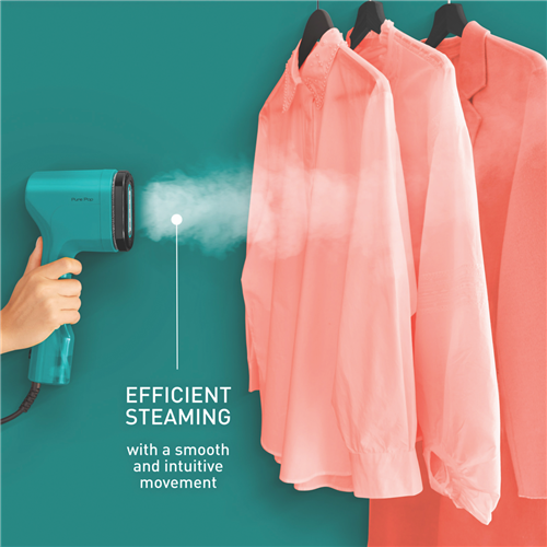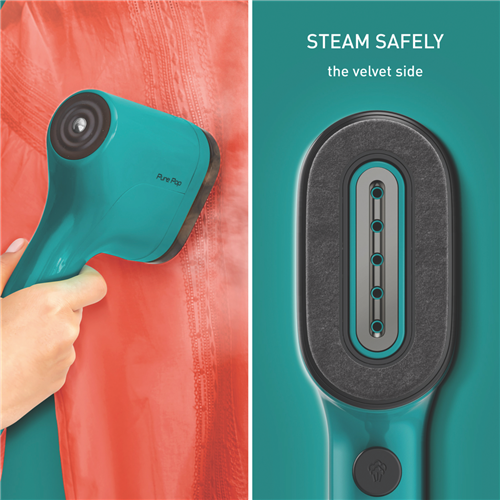 Breathe new life into your wardrobe with the Tefal Pure Pop Garment Steamer. This innovative garment steamer delivers powerful steam in an ultra-compact body to refresh fabrics on the go. The Pure Pop brings garments back to life in just 15 seconds with its 1300W heating element that generates up to 20g of steam per minute. Its integrated lint remover pad keeps clothes looking pristine while the velvet side gently steams delicate fabrics. With a generous 70ml tank you can steam garments continuously for up to 10 minutes between refills. Weighing just 0.5kg the Pure Pop is the ultimate travel companion. Tackle creases and odours in no time whether home or away. Backed by Tefal's 2 year warranty and boasting a 2m cord the Pure Pop Garment Steamer in Teal (DT2024) makes easy work of revitalising clothes.