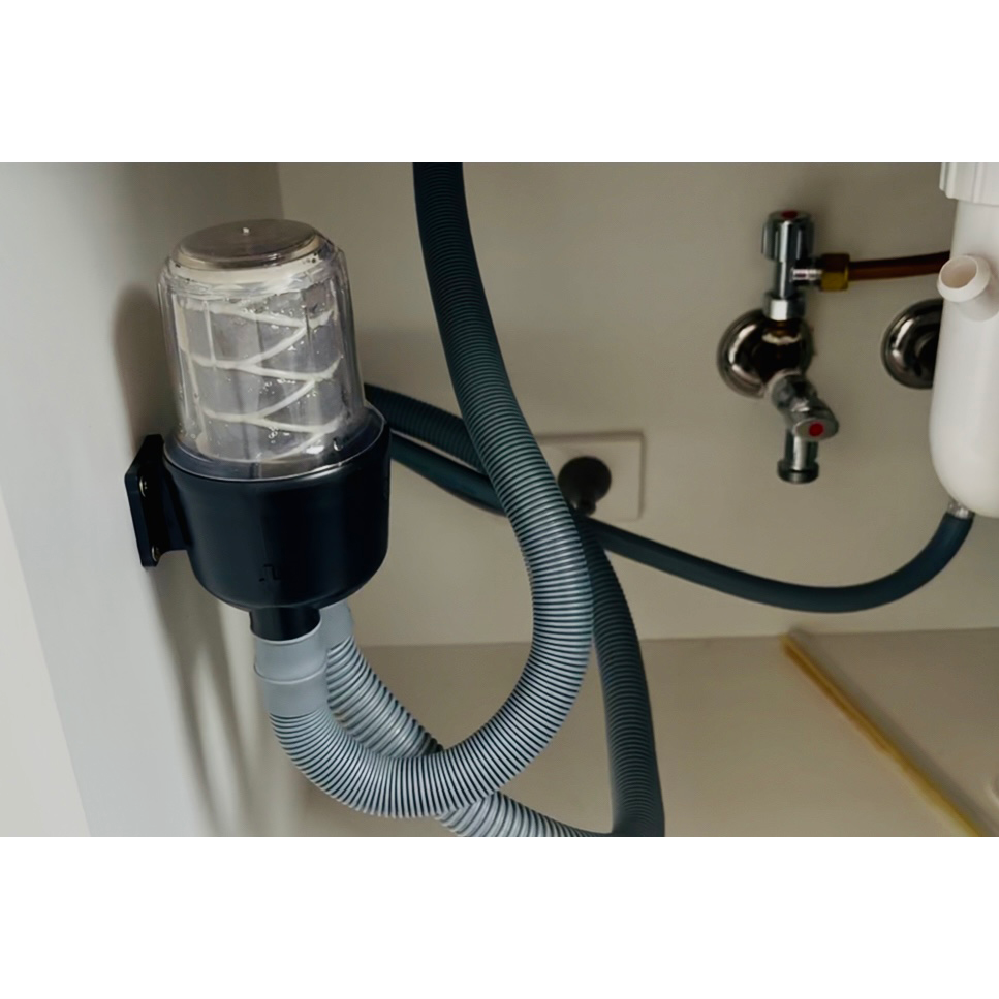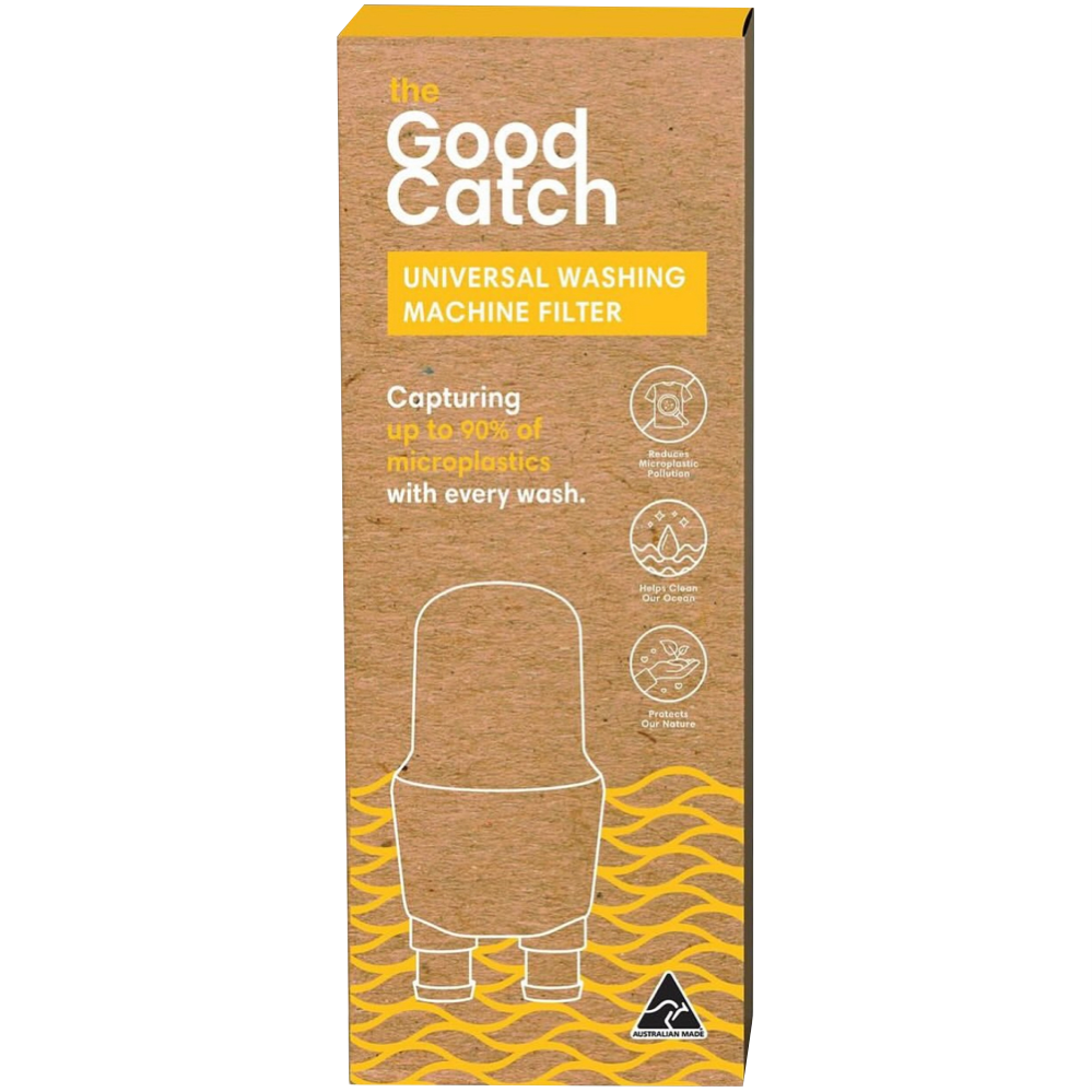 The Good Catch is an external hose-mounted microplastic filtration system designed for domestic washing machines. It captures synthetic microfibres released during washing cycles preventing them from entering household plumbing and waterways