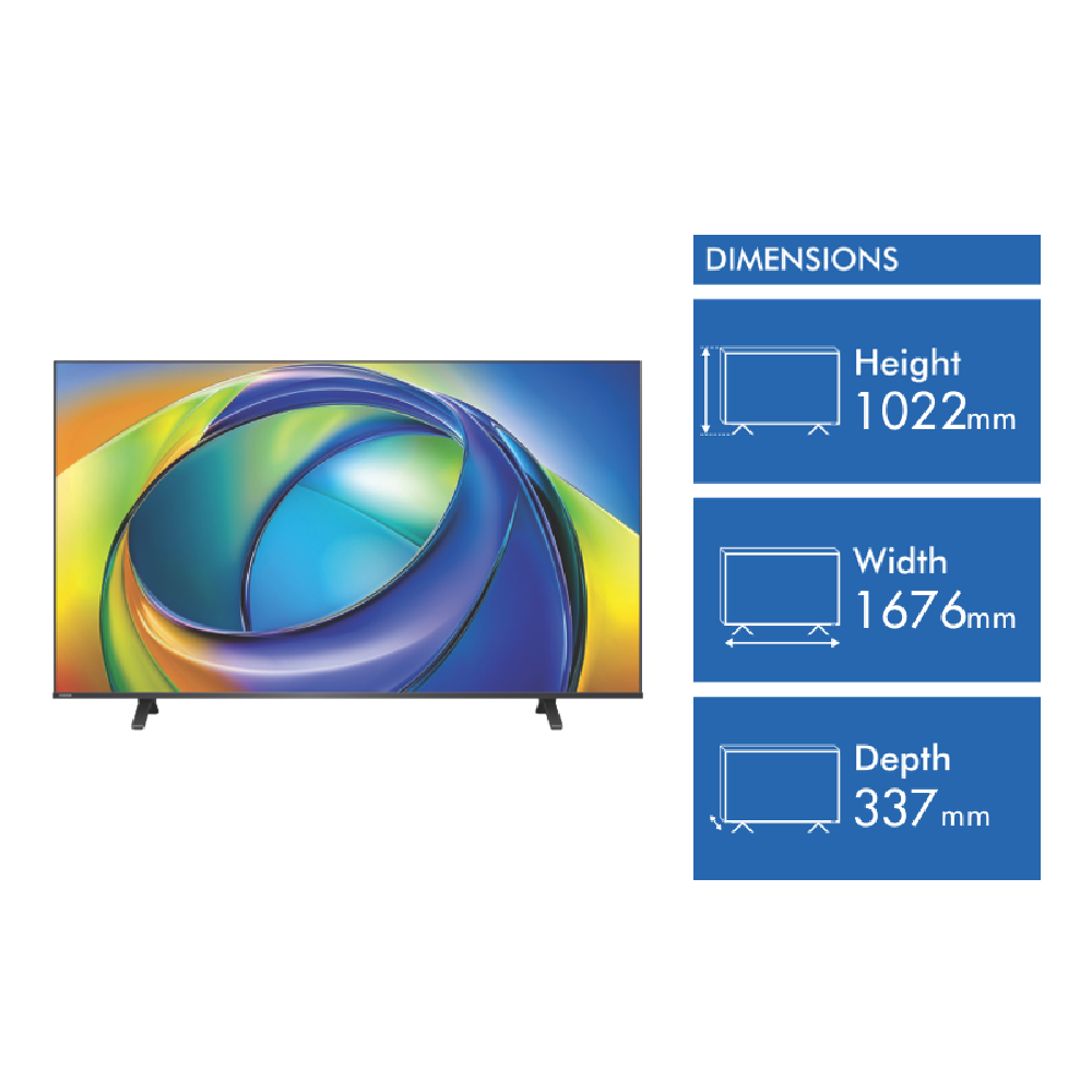 This 75-inch LED TV delivers stunning 4K Ultra HD resolution with 3840 x 2160 pixels bringing your favorite content to life with incredible clarity. Powered by the REGZA Engine 4K processor and enhanced with REGZA AI Picture technology it intelligently optimizes what you're watching for the best possible image. The Direct LED backlight works with HLG HDR support to provide excellent contrast and vibrant colors. Running on the VIDAA U9 operating system this smart TV connects via Wi-Fi or Bluetooth v5.0 and includes gaming-ready features with 3 HDMI 2.0 ports supporting VRR and ALLM. For audio enthusiasts Dolby Atmos creates an immersive sound experience. Comes with a 2-year warranty. Model 75C350RP.