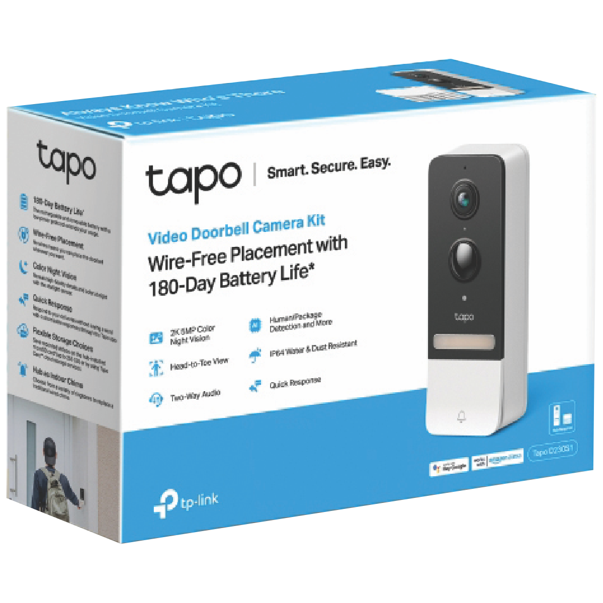 Keep your home safe and secure with the TP-LINK 2K Smart Wireless Video Doorbell. This sleek white security camera packs a punch with its high-resolution 2560 x 1920 pixel sensor for crystal clear 2K 5MP video. See visitors head-to-toe with the wide 850nm night vision that provides clear footage up to 25 feet away even in pitch black. With smart motion detection you'll get instant alerts when the doorbell detects a person - no more missed visitors or false alarms from passing cars. Crystal clear two-way audio allows you to speak to guests directly through the app. Save recordings locally on a microSD card up to 512GB or use Tapo Care cloud services for secure backup. Control your doorbell from anywhere with the Tapo app for iOS and Android. This doorbell works with Amazon Alexa Google Assistant and major smart home platforms so you can integrate it into your connected home. The IP64 rating means it's built to withstand the elements. Never miss a visitor or delivery with this feature-packed smart doorbell. The manufacturer's part number for this product is TAPO-D230S1. For home security and convenience look no further than the TP-LINK Smart Wireless Video Doorbell.