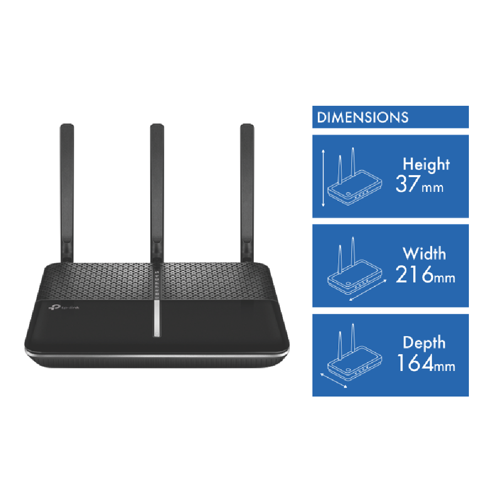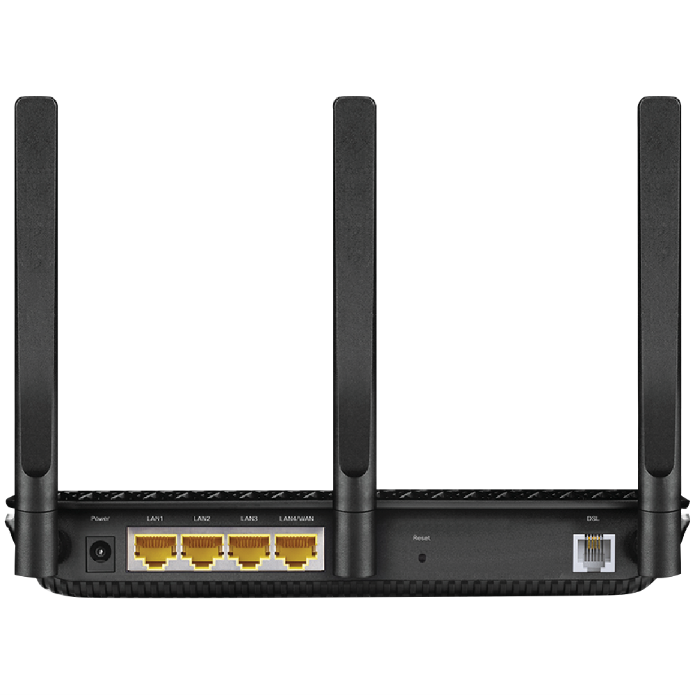 Take control of your home Wi-Fi with the TP-LINK AC2100 VDSL/ADSL Wireless Modem Router. This powerful all-in-one device provides fast reliable internet throughout your home thanks to its dual-band technology and Gigabit Ethernet ports. Enjoy combined modem and router functionality allowing you to connect to VDSL or ADSL and create a speedy home network. With a maximum wireless speed of up to 1733Mbps on the 5GHz band and 300Mbps on the 2.4GHz band you can seamlessly stream HD movies game online video chat and more across multiple devices. Six Gigabit Ethernet ports give you flexible wired connectivity options. Advanced security protocols like WPA/WPA2 keep your network and data safe from intruders. Easy to set up and manage this Wi-Fi router provides whole-home coverage and lag-free performance thanks to its four high-gain antennas. Check email browse social media and access cloud storage at lightning-fast speeds. Designed to be compact yet powerful the Archer VR2100 wireless modem router brings next-level performance to VDSL ADSL and fibre broadband connections. Enhance your connectivity and enjoy buffer-free streaming gaming downloads and more with this versatile all-in-one networking solution. The manufacturer's part number for this product is ARCHER VR2100. Discover the possibilities with the TP-LINK AC2100 VDSL/ADSL Wireless Modem Router.