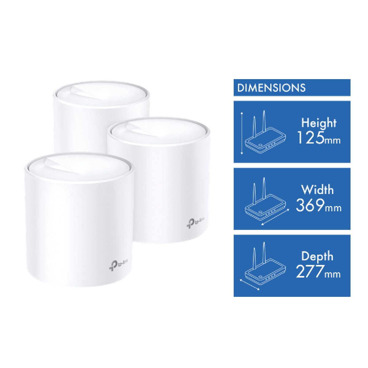 • Mesh Wi-Fi system with WiFi 6 802.11ax, up to 1,800 Mbps