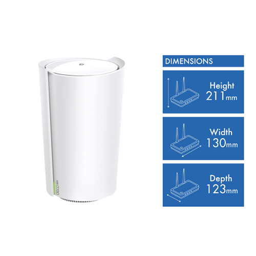 • Mesh Wi-Fi Router WiFi 6 802.11ax 1201 Mbps 5 GHz 574 Mbps 2.4 GHz
