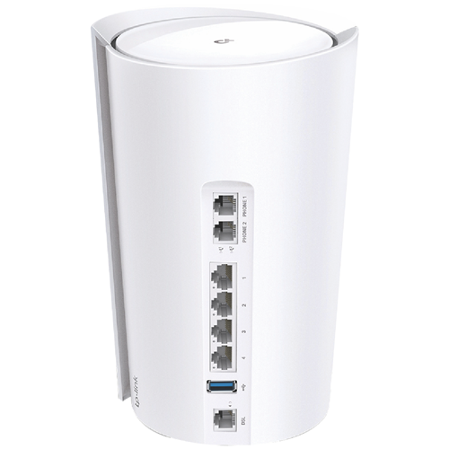 The TP-LINK AX5400 VDSL Whole Home Mesh WiFi 6 Modem Router is your ticket to faster farther-reaching Wi-Fi. With Wi-Fi 6 technology and flexible mesh networking this sleek white modem router blankets your whole home in speedy reliable wireless coverage. Surf stream game and more with combined speeds up to 5400 Mbps on the crystal-clear 5GHz and 2.4GHz bands. The four internal antennas utilize Beamforming technology to direct focused signal strength where it's needed most. Manage your network and connected devices easily through the intuitive app. With the integrated VDSL modem and 4 Gigabit LAN ports this mighty modem router unlocks the full potential of your high-speed fibre broadband. Bringing the latest in DSL technology to the table the TP-LINK is 3.5 times faster than previous generations. With robust security protocols mesh Wi-Fi for seamless roaming and all the latest standards for wireless performance the TP-LINK DECO-X73-DSL(1-PACK) is the ultimate modem router for blanketing your home in pure Wi-Fi power. The manufacturer's part number for this product is DECO-X73-DSL(1-PACK).