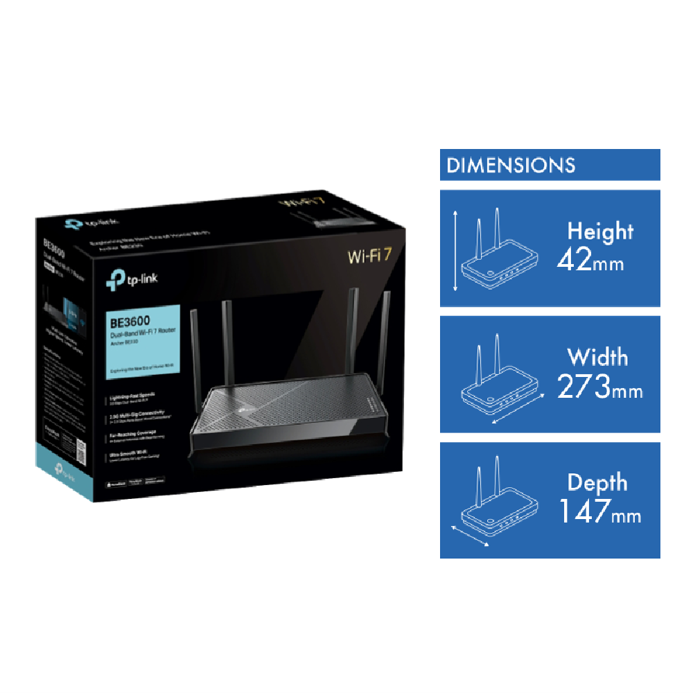• Dual-band Wi-Fi 7 router with up to 3.6 Gbps speeds