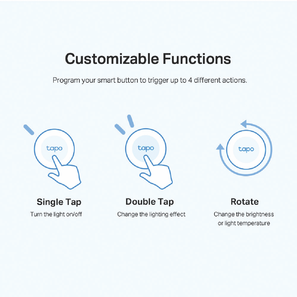 Take control of your smart home with the TP-LINK Smart Button. This innovative white button lets you automate routines and control compatible smart devices with the simple tap of a finger. Mount it anywhere for convenient wireless operation via the Tapo app on iOS 10+ or Android 5.0+. With the Smart Button you can set personalized scenes like movie night to dim lights and start your home theater with one tap. Or use it to toggle lights on and off as you move through your home. The compact CR2032 battery-powered design allows flexible placement around the house. Setup is easy; just pair with your Tapo hub and mount using the included tape and template. Start building customized smart home automations with this versatile Smart Button. The manufacturer's part number for this product is TAPO-S200B. Take control of your smart home now with the TP-LINK Smart Button.