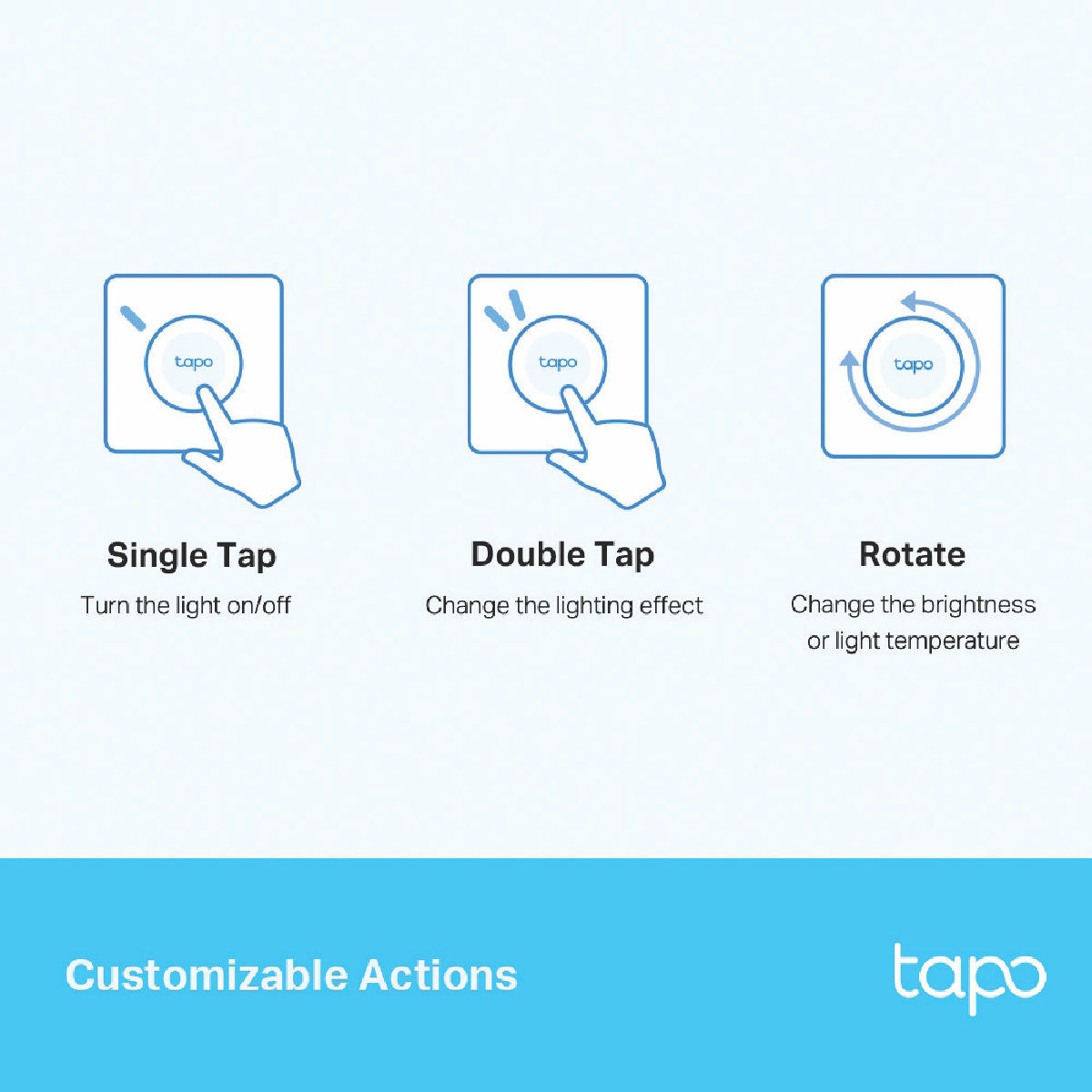 Take control of your home lighting with the TP-LINK Smart Remote Dimmer Switch. This innovative white smart dimmer switch lets you adjust brightness and ambience from anywhere using your smartphone. With the Tapo app you can schedule lights to turn on/off automatically create custom lighting scenes and monitor real-time energy usage. The compact 86 x 86 x 23.7mm design fits over your existing light switch with no need for extra wiring or a hub. It's powered by a long-lasting CR2032 battery and comes with wall plate anti-slip tape and quick start guide. Key features include dimming scheduling remote access custom lighting scenes and energy monitoring. With Tapo S200D you'll enjoy the convenience of smart lighting and energy savings. Upgrade your home with this easy-to-use smart dimmer switch today. The manufacturer's part number for this product is TAPO-S200D. Check it out now to modernize your lighting.