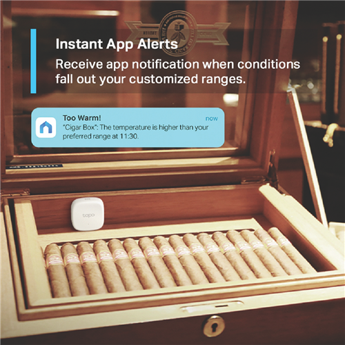 Effortlessly monitor temperature and humidity in your home with the TP-Link Smart Temperature & Humidity Monitor. This clever device connects to your smart home network giving you remote access to real-time readings via the Tapo app. With its compact white design it blends into any space while providing 24/7 tracking of conditions that impact health and comfort. Alexa and Google Assistant integration allows hands-free voice control.The Tapo app lets you set up custom alerts for when temperature or humidity exceed your preferred range. Historical data and graphs reveal trends over time to help optimize your HVAC system. Battery-powered and wireless this monitor installs in minutes with peel-and-stick adhesive or included magnets. With easy setup intuitive controls and seamless smart home integration the TP-Link Smart Temperature & Humidity Monitor takes the guesswork out of maintaining ideal conditions in your home. The manufacturer's part number for this product is TAPO-T310. Monitor your indoor climate with confidence using this innovative smart sensor from TP-Link.