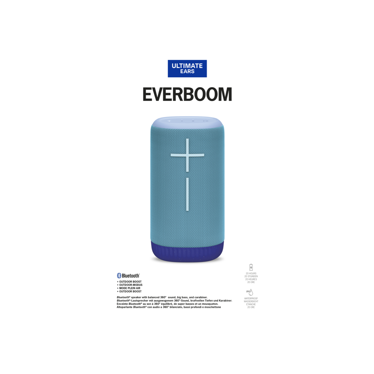Ready to rock your next adventure with epic sound? The Ultimate Ears Everboom Portable Bluetooth Speaker in stunning Blue is your go-to mate for music on the move. This tough little speaker packs a serious punch delivering powerful 360-degree sound that'll have you grooving for up to 20 hours on a single charge. And with its IP67 rating you can fearlessly take your tunes to the beach pool or even on a muddy hike - the Everboom can handle it all. Connecting is a breeze thanks to Bluetooth so you can stream your favourite playlists wirelessly from any compatible device. The sleek compact design features an attached strap for easy carrying while the vibrant Blue colour adds a pop of personality to your audio setup. In the box you'll find the Everboom speaker a USB-C cable for charging and a quick start guide to get you up and running in no time. Plus enjoy peace of mind with a 2-year manufacturer's warranty. Get ready to elevate your audio game with the Ultimate Ears Everboom 6234143 - your ultimate sidekick for unforgettable musical moments wherever life takes you!