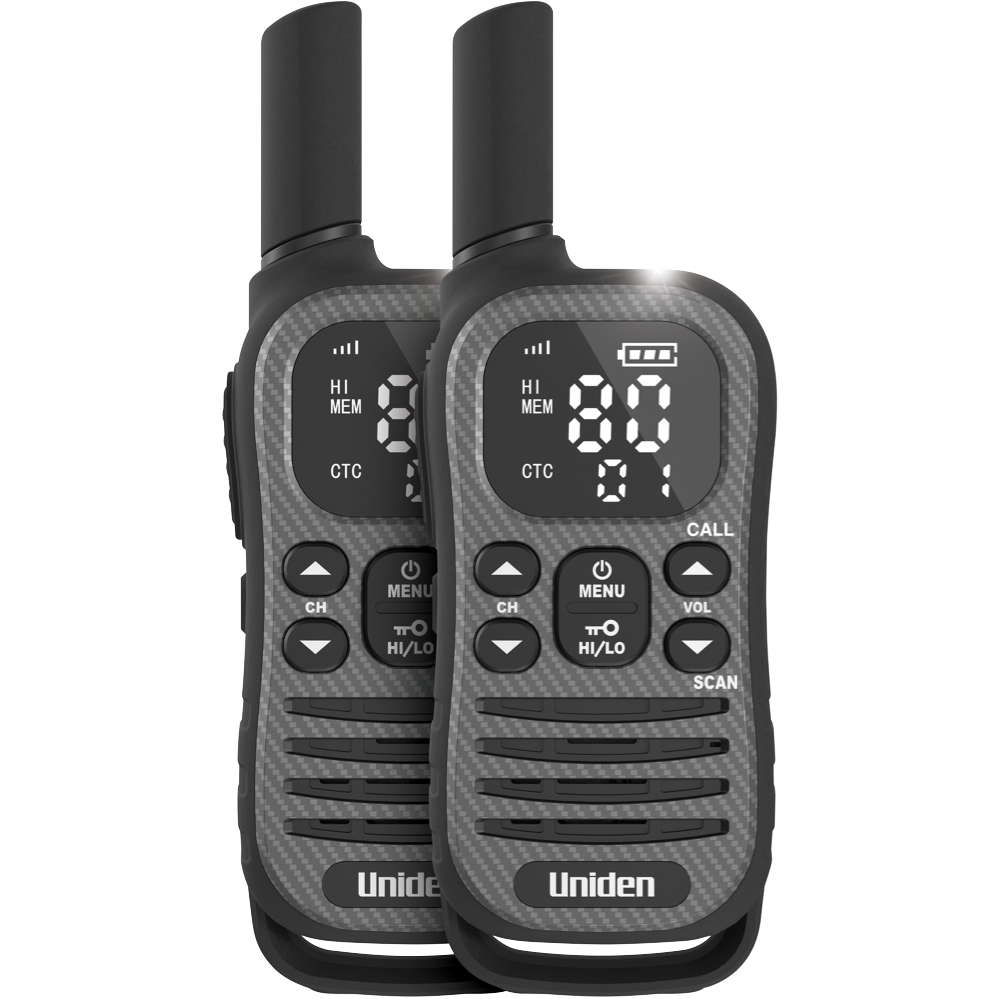 Uniden 80 Channel UHF Radio USB-C Charging Range Extender Twin Pack Gun Metal Grey