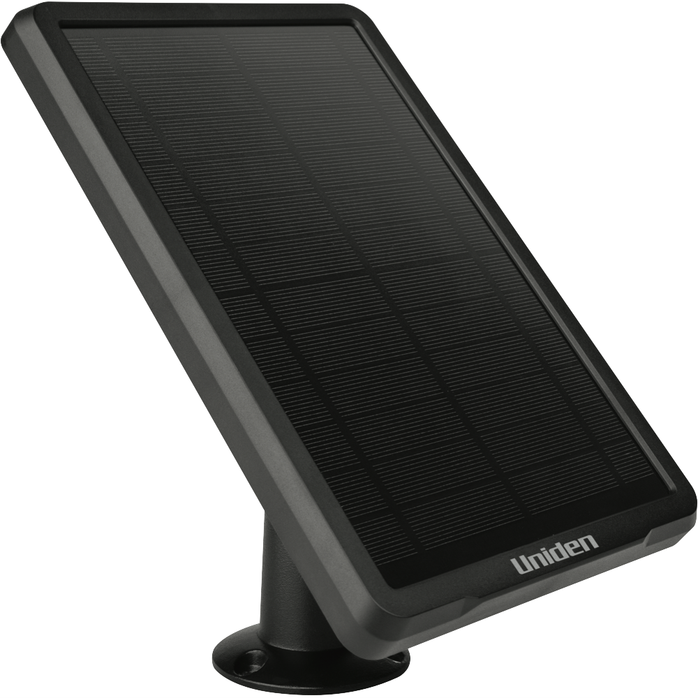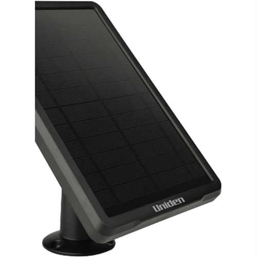 Power up your Uniden security camera with this durable solar-powered 2.5W panel. Designed specifically for the Appcam Solo camera this compact black panel offers an eco-friendly way to keep your security system running. The solar panel converts sunlight into usable power providing a renewable energy source to recharge the camera's battery. With its weather-resistant construction the panel can be installed outdoors and positioned to maximize sun exposure. Keep a watchful eye on your home or business even in remote off-grid locations. This solar panel ensures your Appcam Solo has the juice to capture and transmit footage day and night. Add round-the-clock security without running power lines or changing batteries. The manufacturer's part number for this product is SPS-01.