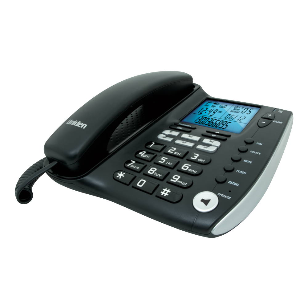 Keep connected with the sleek and stylish Uniden Corded Phone. This user-friendly phonebook stores up to 70 entries and features a handy 12-month manufacturer's warranty making it the ideal cordless phone for home or office use. With a convenient speakerphone function and crisp easy-to-read backlit Ice Blue LCD display you can enjoy handsfree conversations and easily view incoming calls. The polyphonic ringtones allow you to customize sounds for different contacts while the caller ID feature lets you screen calls before answering. Even in a blackout this reliable phone works to keep you connected. Wall mountable for space-saving convenience this phone delivers solid performance and practicality. For those seeking an affordable and dependable corded phone solution the Uniden Corded Phone is a great choice. The manufacturer's part number for this product is FP1200. Make the smart choice and bring home the Uniden Corded Phone today.