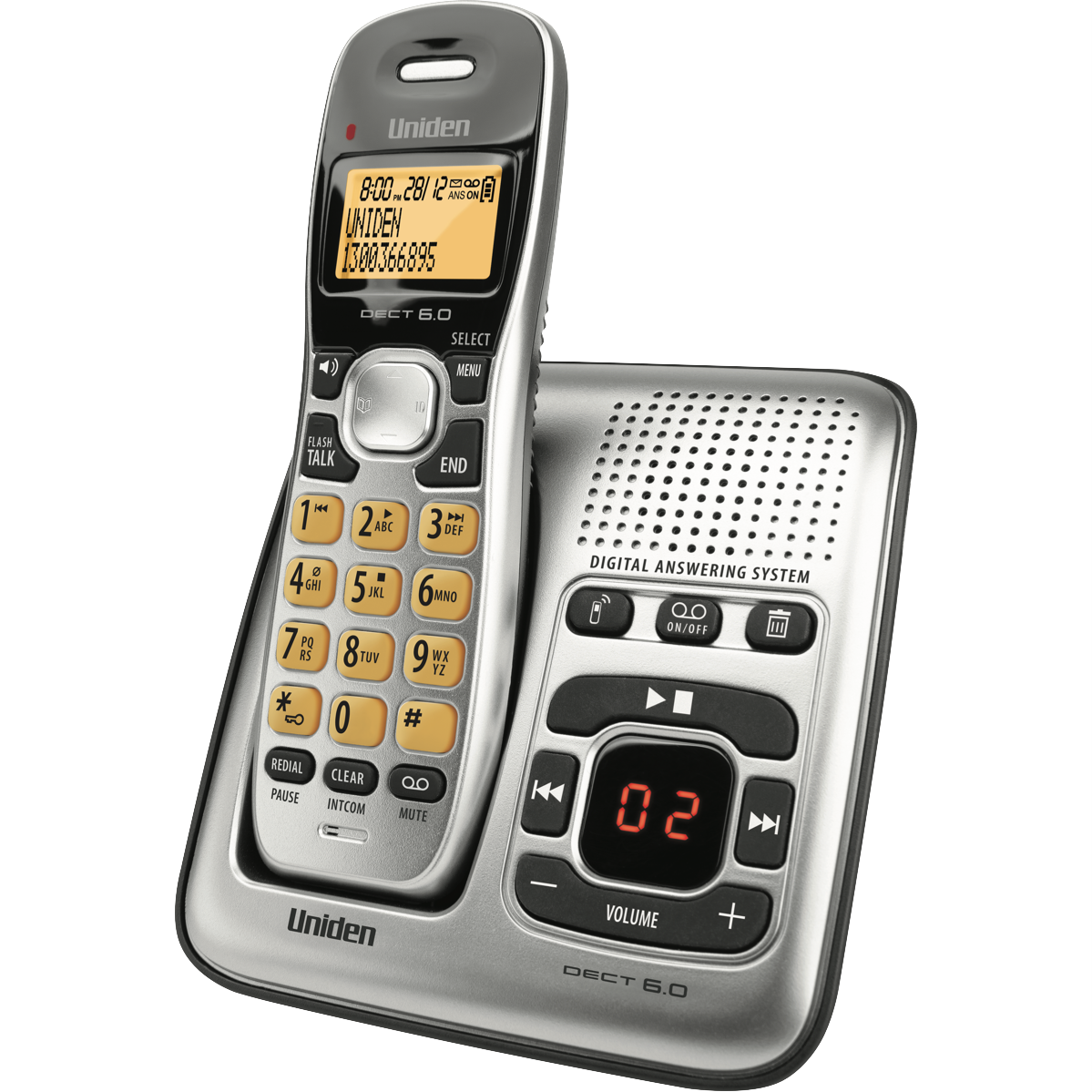 Stay connected with the Uniden Cordless Phone featuring a handy answering machine speakerphone and generous talk time. Make and take calls in any room with this cordless phone's excellent range and long-lasting battery. With room for 70 contacts in the phonebook and handy caller ID to see who's calling you'll never miss an important call again. Mount it on the wall for convenience and enable the power failure backup to keep you connected even when the power goes out. The Wi-Fi connectivity allows you to make VoIP calls via the internet. With multiple handsets you can have a phone in every room. This cordless phone has all the features you need to stay in touch with friends and family. The manufacturer's part number for this product is DECT1735. Check out this must-have cordless phone today.