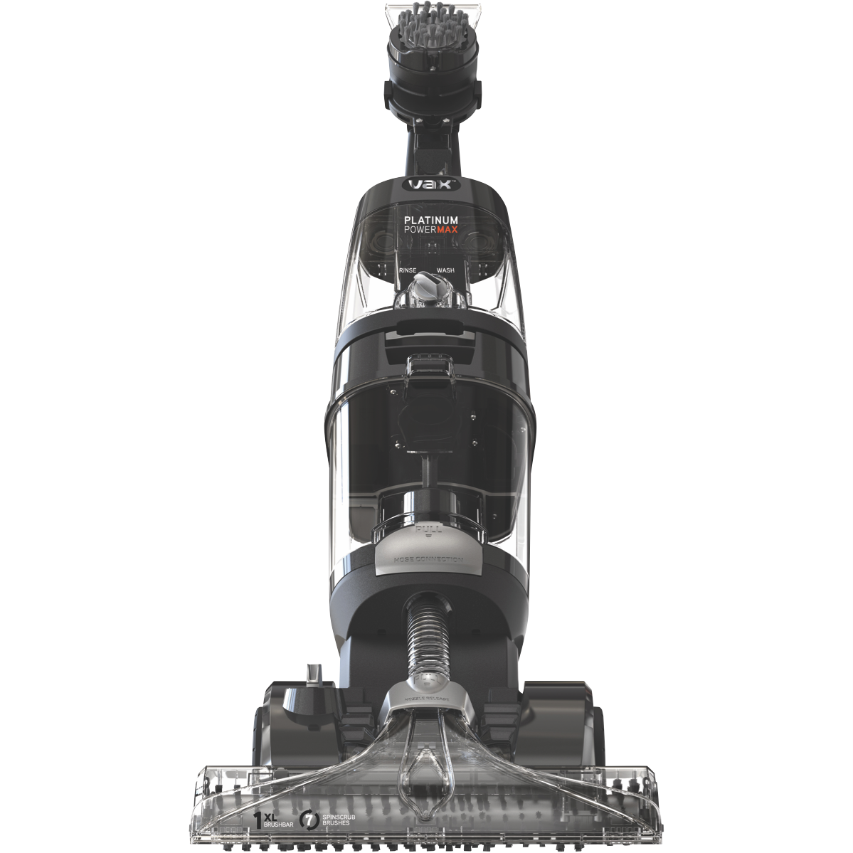 The Vax Platinum Power Max Carpet Washer VX100 provides a powerful deep clean to carpets. With Antimicrobial Treatment it reduces the spread of bacteria after each clean for a more hygienic home. The XL brush bar and patented SpinScrub technology rotate in different directions to agitate and lift away deep dirt from carpet fibres. The long reach 4.6 metre stretch hose and SpinScrub wash tool effectively clean stairs car interiors or any stubborn spot stains around the home. The included Pre-Treatment Wand along with Automix Technology allows a jet of cleaning solution to be sprayed directly on the stain before cleaning carpet for more effective cleaning and a heat blast speeds up drying times. Twin tanks on the Vax Platinum PowerMax ensure clean and dirty water is kept separate meaning you'll only ever put clean water and solution into carpets.