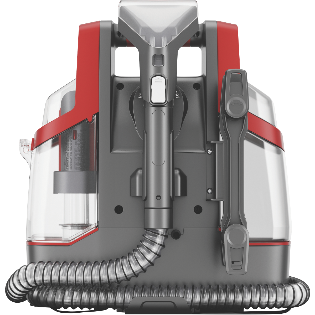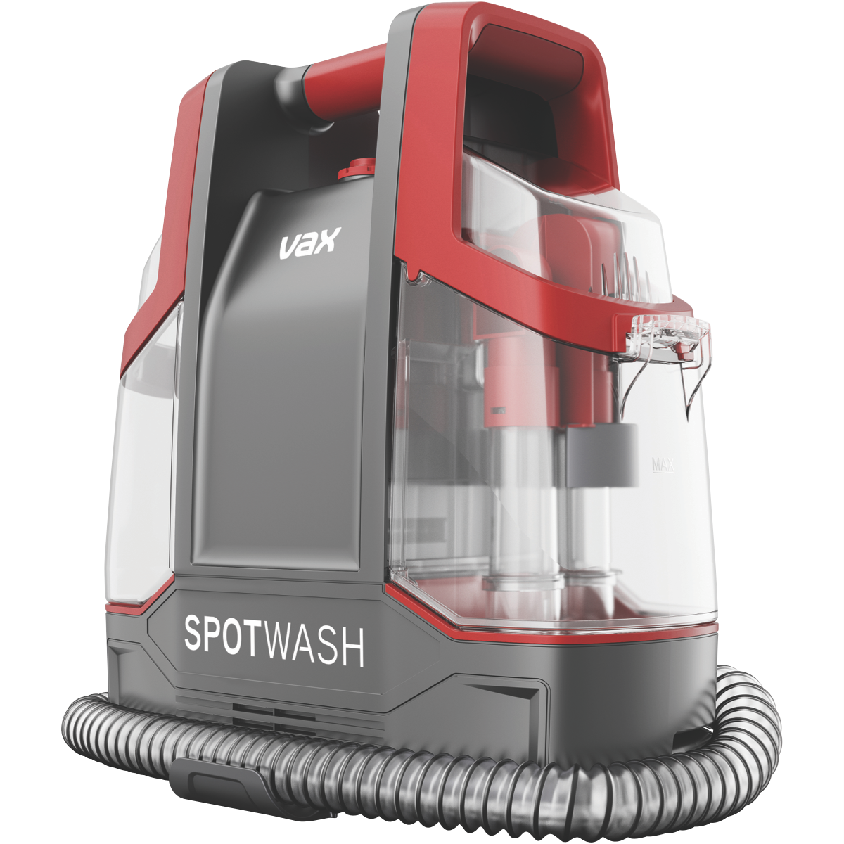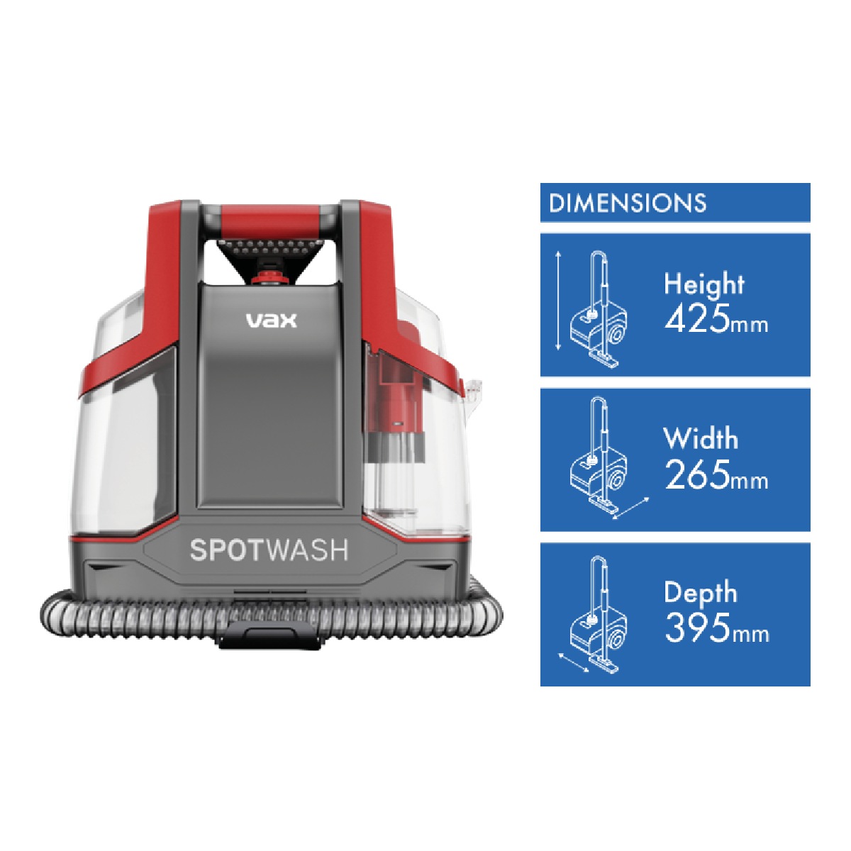 The VAX Platinum SpotWasher VACSC21E spot cleaner effectively removes spills and stains by combining powerful suction and deep cleaning tools with a specifically formulated cleaning solution designed to target everyday stains. Dual Tank technlogy separates clean water from dirty to ensure efficient cleaning action and fresh solution dispensing. It includes a multi-purpose attachment for cleaning carpets upholstery and more plus a hard floor scrub attachment. With a 1.5m long hose and 10cm wide cleaning path it's convenient for quickly cleaning everyday mess and the slim compact design makes it easy to store when not in use. The self clean function efficiently flushes the hose out helping to remove dirt and debris left in the hose and dirty water tank after cleaning.