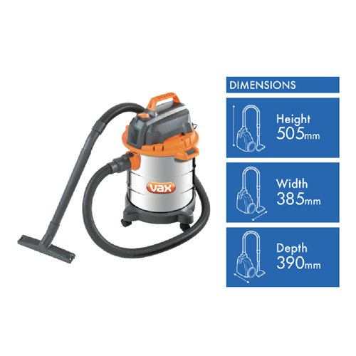 Tackle dust and dirt on hard floors with the powerful Vax Wet N Dry Barrel Vacuum. This bagged barrel vacuum makes light work of cleaning thanks to its robust 20 litre capacity bin and handy blowing function. The versatile 3 piece wand crevice tool and floor brush ensure a thorough clean on all floor types. Weighing just 5.1kg the 8 metre cord offers superb manoeuvrability around the home. Vax's 2 year warranty provides peace of mind with this bagged vacuum. Enjoy sparkling floors without the hassle thanks to this barrel vacuum's incredible suction power. From scattered debris to embedded dirt this vacuum is your cleaning ally. Its array of tools caters to every cleaning need. The crevice tool dislodges dust from cracks and corners. The floor brush loosens ground-in dirt from carpets and rugs. While the wand directs suction for precision cleaning. With a large 20 litre capacity you'll avoid constant emptying. This bagged vacuum allows you to simply dispose of dust bags when full. Making cleaning even easier. The manufacturer's part number for this product is VX40. Check out the Vax Wet N Dry Barrel Vacuum today for a deeper clean.
