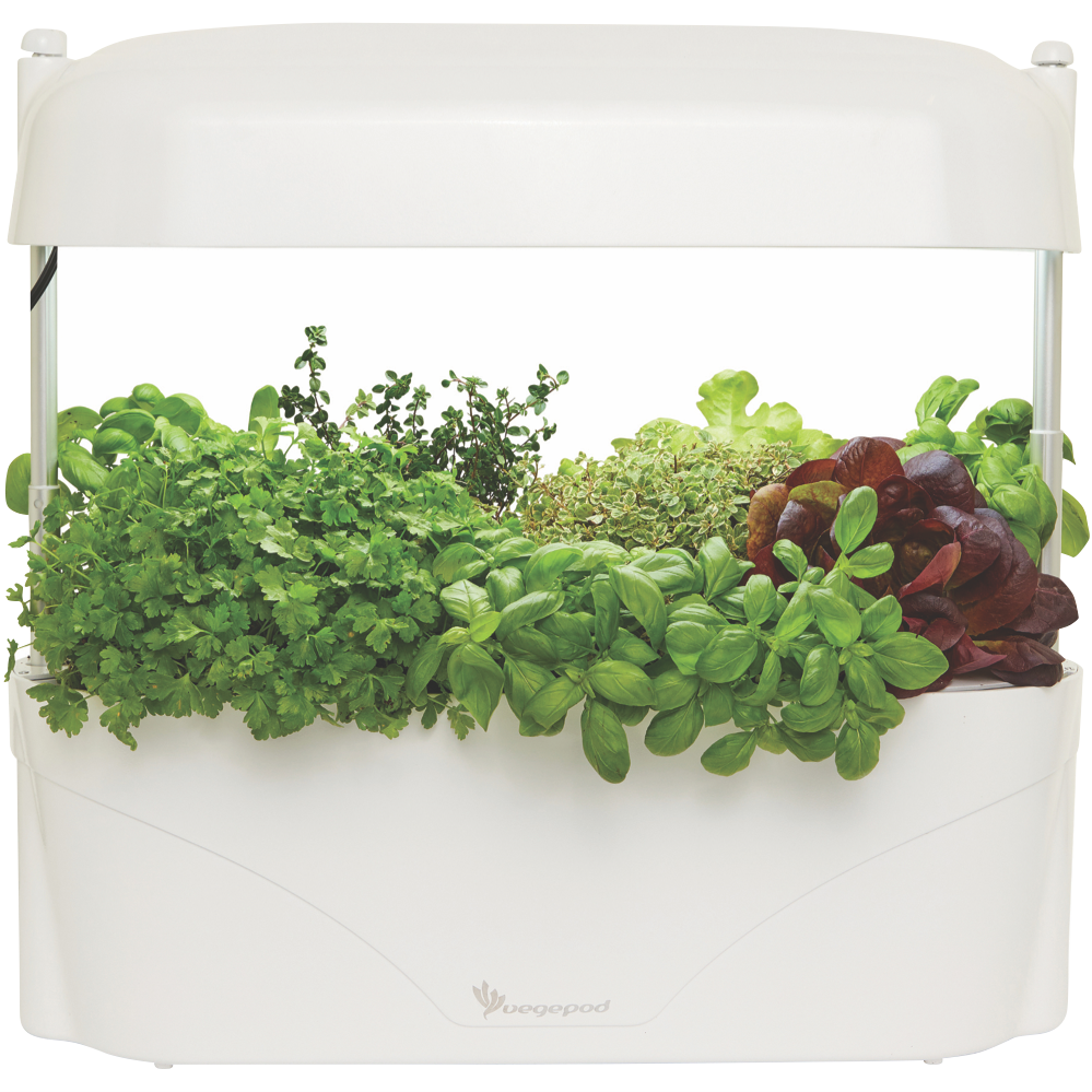 Cultivate your indoor gardening passion with the sleek and stylish Vegepod Kitchen Garden in crisp white. This innovative indoor garden bed features full-spectrum LED lighting to nurture your plants allowing you to grow fresh herbs vegetables and microgreens right in your kitchen. The Vegepod's compact design measuring 610mm high 220mm wide and 600mm deep fits seamlessly into any home decor while providing ample growing space. Enjoy peace of mind knowing your plants are protected from pests ensuring a bountiful and healthy harvest. Weighing just 3kg this lightweight and portable indoor garden is easy to move and maintain. The manufacturer's part number for this product is KG001W. Elevate your culinary creations and embrace sustainable living with the Vegepod Kitchen Garden backed by a 1-year manufacturer's warranty.