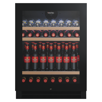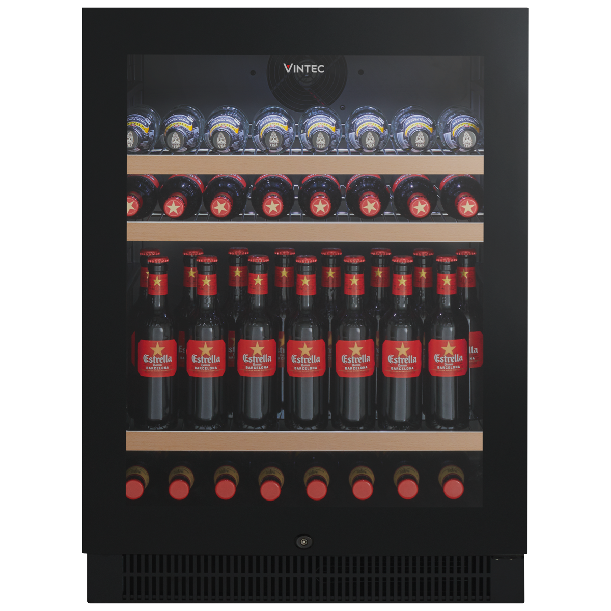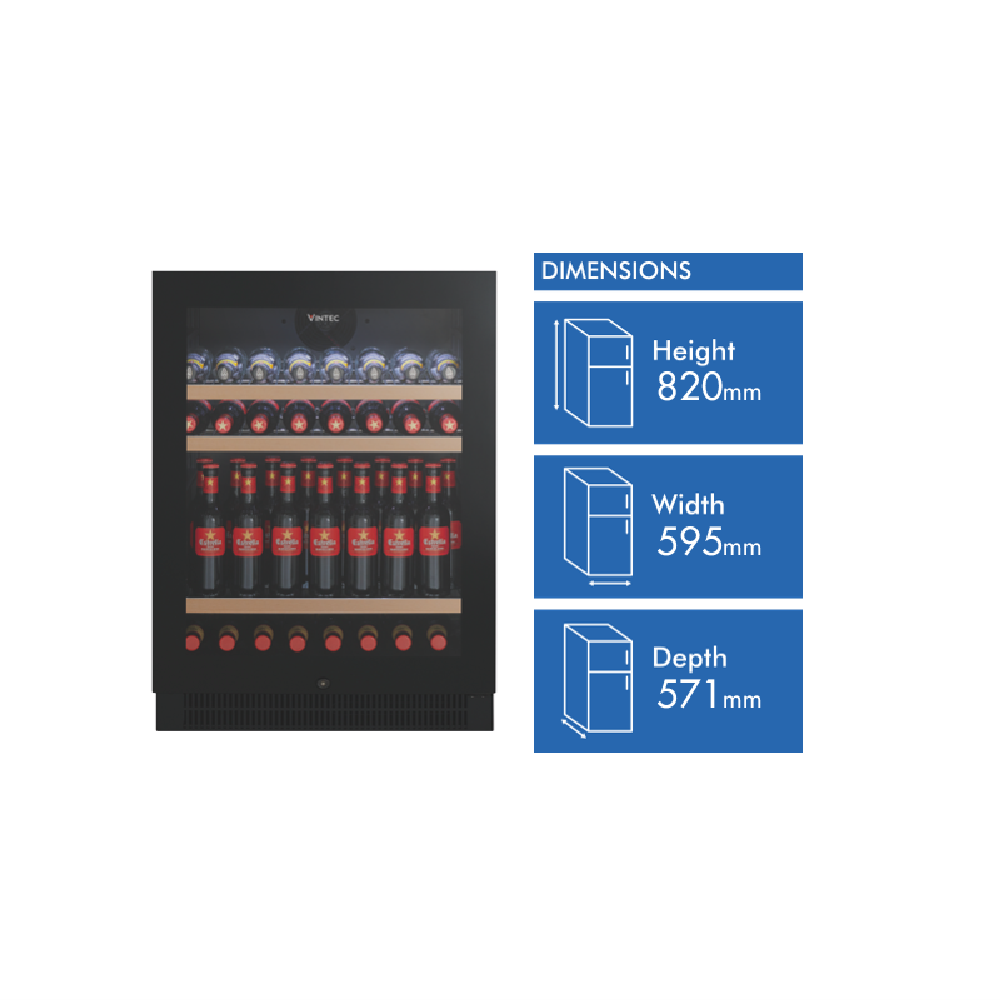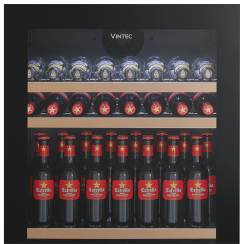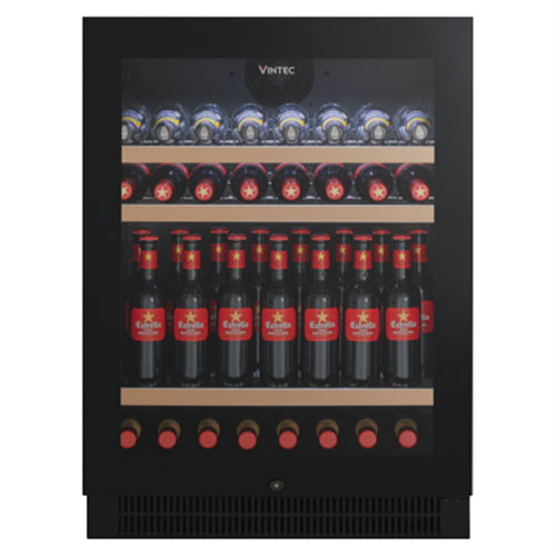 The Vintec (VBS050SBB-X) 100 Bottle Beverage Centre provides a luxury and premium experience to store and demonstrate your wine beer or spirit collection. The internal cabin keeps all your beer cold at 2-5 degrees while chilling Champagnes and white wines for easy serving. Demonstrate your collection with the internal LED lighting which brightens up to see all your favourite beverages. The digital temperature display always keeps you aware of what cool or chilled your drinks are. The adjustable shelving layout and reversible beverage centre door provides a range of customising to suit your catering and personal taste. Safety around alcohol is an important factor especially within the household; the installed security lock prevents unwanted mishaps from occurring when trying to access the Vintec 100 Bottle Beverage Centre. Keep your alcohol and drinks tasting great and storage life high by the inclusion of the triple glazed door and anti-UV glass that prevents the sun damaging your favourite drinks.