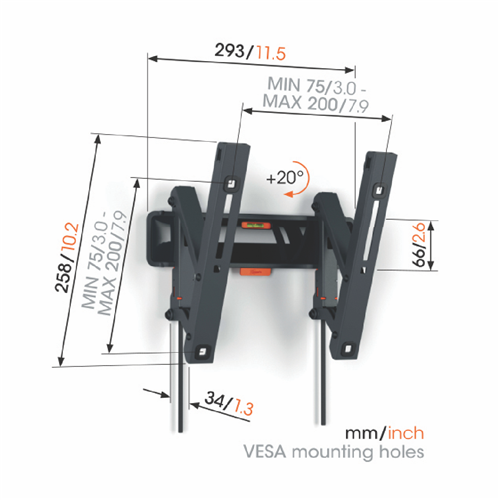 Mount your TV in style with the Vogels Tilting TV Wall Mount. This versatile wall bracket is designed to securely hold 19 to 43 inch TVs weighing up to 15kg. With a maximum VESA pattern of 200 x 200mm and a slim profile that sits just 34mm from the wall it provides an ultra low-profile mounting solution for your living room bedroom or office. Tilt your screen 15 degrees down or up to reduce glare and achieve the optimal viewing angle. Crafted from heavy-duty steel this sturdy bracket offers stable support you can rely on. It's easy to install too with its open wall plate design that enables hassle-free wiring. Give your TV the perfect perch and enjoy convenient positioning adjustments with the Vogels Tilting TV Wall Mount. The manufacturer's part number for this product is TVM3215B. Check out this wall bracket to mount your TV today.