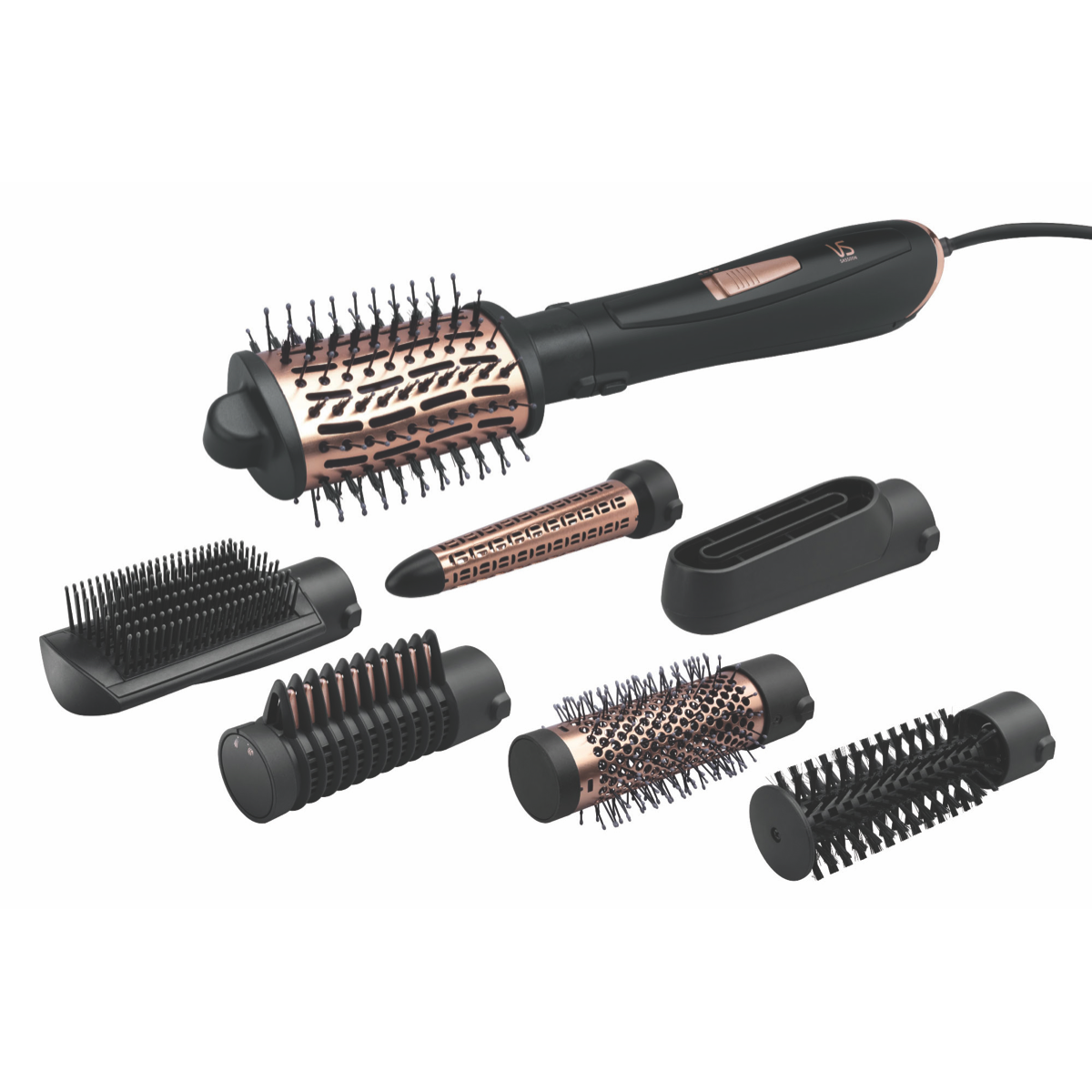 Tame unruly locks and create salon-worthy hairstyles at home with the VS Sassoon Air Style Brilliance Styler. This powerful 1000W styler features ionic conditioning and ceramic coated plates to smooth and add shine as you style. With two heat settings you can customize styling for all hair types. The 2.5m swivel cord allows flexibility and ease of use. Additional features like the universal heat protection glove and hinged rear filter make styling safe and convenient. This styler comes with 7 styling accessories to create everything from loose waves to tight curls. With superior ionic conditioning ceramic technology and a 3 year warranty this brilliant styler will help you achieve gorgeous hairstyles day after day. The manufacturer's part number for this product is VSHA2136A. Discover the brilliance of salon-style hair any day with the VS Sassoon Air Style.