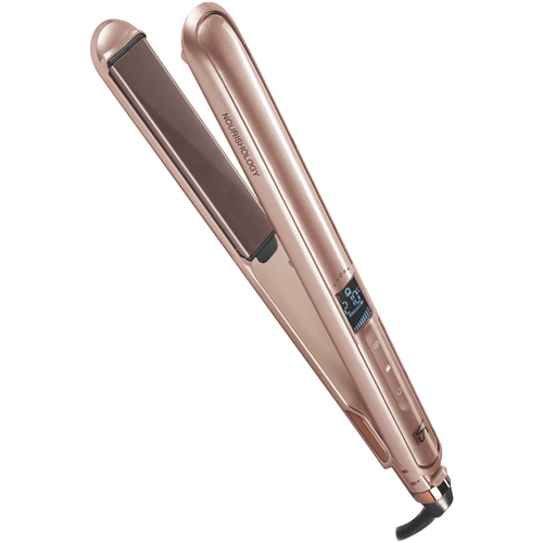 Transform your hair with the gold VS Sassoon Nourishology Smooth Straightener. Its breakthrough ionic conditioning technology infuses each strand with micro-conditioners to leave hair frizz-free and luminously smooth. The keratin ceramic plates glide effortlessly through hair while locking in moisture. With an ultra-fast 15 second heat up and 5 LCD temperature settings from 130C to 210C you can style hair at the ideal heat. The extra-long 110mm plates straighten large sections in a single pass saving time. It automatically shuts off after 60 minutes for safety and peace of mind. Additional features like the swivel cord and curved housing offer greater flexibility and comfort when styling. Plus the hinge lock protects the floating plates for secure storage. Covered by a 2 year warranty this innovative straightener nourishes hair for a smooth sleek finish. The manufacturer's part number for this product is VSS224A. Transform your look with the nourishing power of the VS Sassoon Smooth Straightener today.
