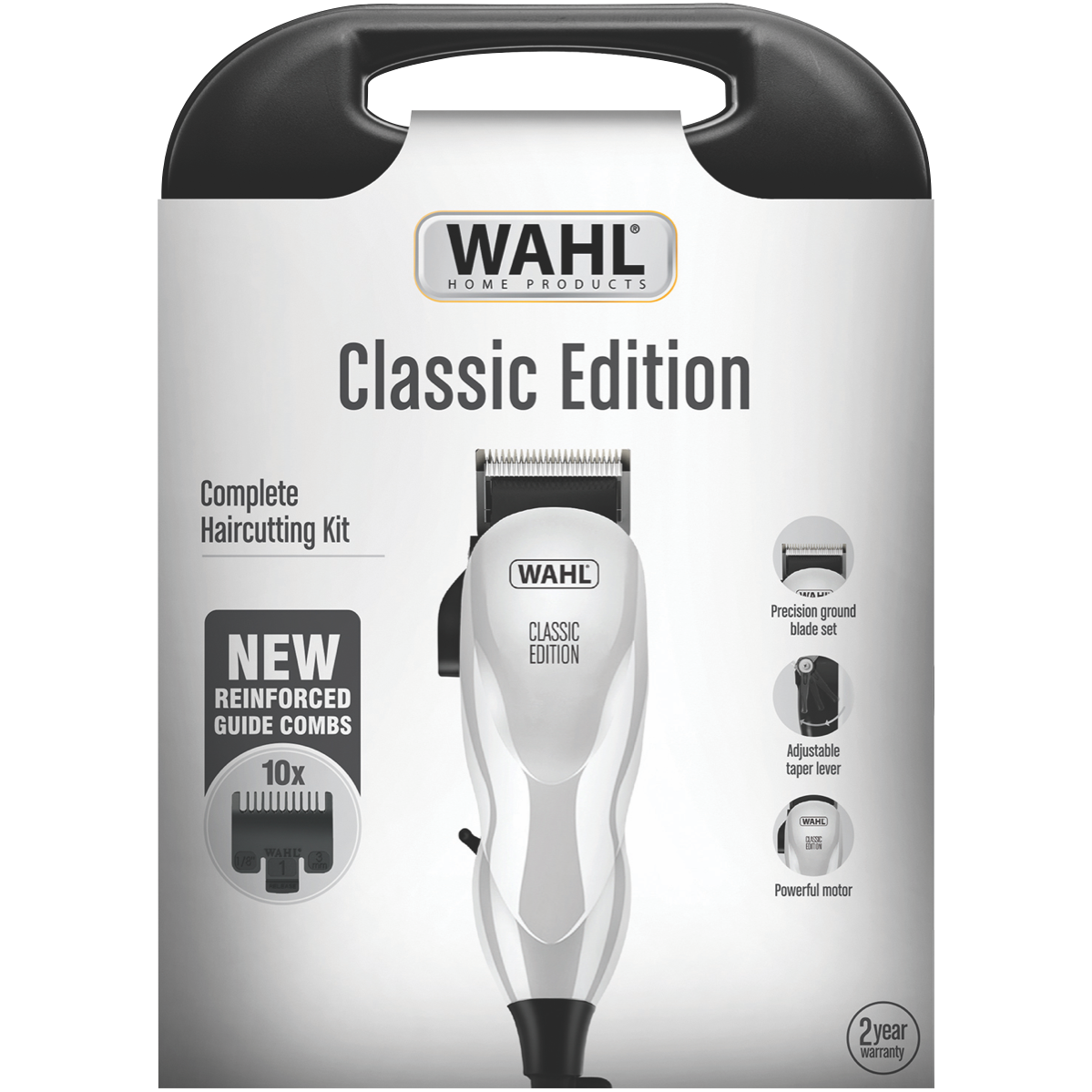 Looking for a reliable and versatile hair clipper? Check out the Wahl Classic Edition Clipper. With its precision ground blades and 10 guide combs ranging from 1.5mm to 19mm you can achieve any hairstyle you want. The corded design ensures consistent power for uninterrupted grooming sessions. This complete set comes with everything you need including a hard storage case barber comb styling comb scissors cleaning brush blade oil and guard. Plus enjoy peace of mind with the 2 year manufacturer's warranty. Get your Wahl Classic Edition Clipper (WA79805-212) today and experience professional-level haircuts at home.