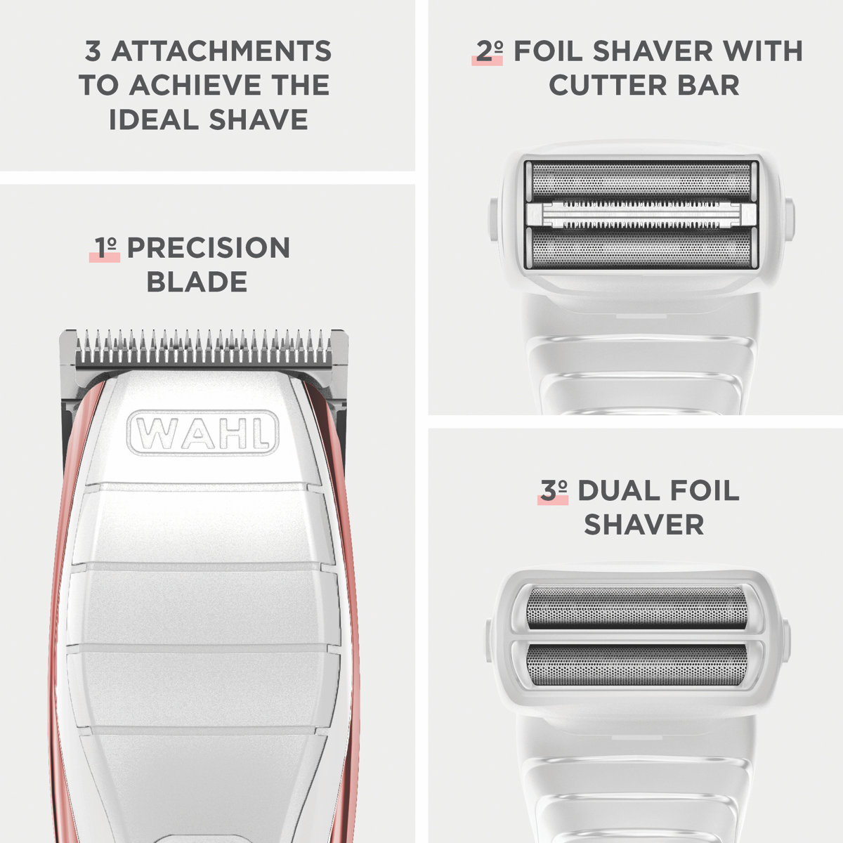 Additional Features 2 Foil head attachments that are gentle on the skin - Use the foil shaver with cutter bar for areas that have long hairs can then use the dual foil shaver to shave it down to the closest, smoothest, bump free finish possible, sleek, ergonomic design for h
