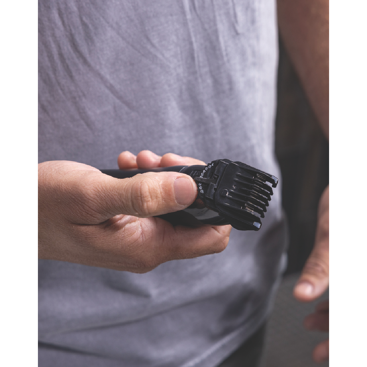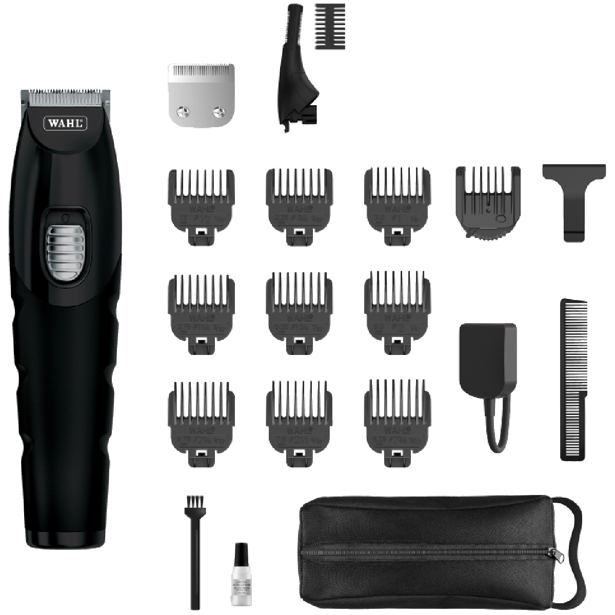 Tame unruly hair and sculpt your style with precision using the sleek lightweight Wahl Lithium Ion Multi Groom + Trimmer. This versatile cordless clipper delivers up to 2 hours of cordless runtime per charge giving you the freedom to trim and detail anywhere. Equipped with a powerful rotary motor it maintains constant speed even through dense coarse hair. The lithium ion battery enables quick charging so you can get back to grooming rapidly. It comes with 1 x 10-Position reinforced guide comb to cut 2mm to 11mm lengths. The 9 individual reinforced guide combs allow a close cut of 1/16-inch and trimming up to 1/2-inch. The precision ground blades stay ultra-sharp for smooth even cutting. This groomer's slim ergonomic design and lightweight body provide easy handling and continuous use. The soft storage pouch keeps the clipper protected while the cleaning brush whisks away loose hairs. Use this groomer wet or dry for maximum convenience. Sculpt your style to perfection and enjoy precise trims with the versatile Wahl Lithium Ion Multi Groom + Trimmer. The manufacturer's part number for this product is 3023344.