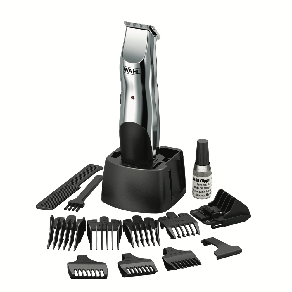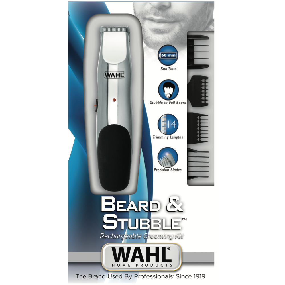 Get a perfectly trimmed beard and stubble with the Wahl Rechargeable Beard & Stubble Trimmer. This cordless rechargeable beard trimmer features precision blades and 14 trimming lengths to tackle any beard style from a 5 o'clock shadow to a full beard. The 6-position Acculock guide comb and seven individual guide combs allow you to achieve your desired length with ease. With up to 60 minutes of cordless runtime from a single charge you can trim your facial hair wherever needed. The trimmer's black and grey design looks great in any bathroom. Keep your facial hair well-groomed and stylish with the Wahl beard and stubble trimmer. The manufacturer's part number for this product is WA9918-4212. Check out this beard trimmer today for keeping your facial hair looking its best.