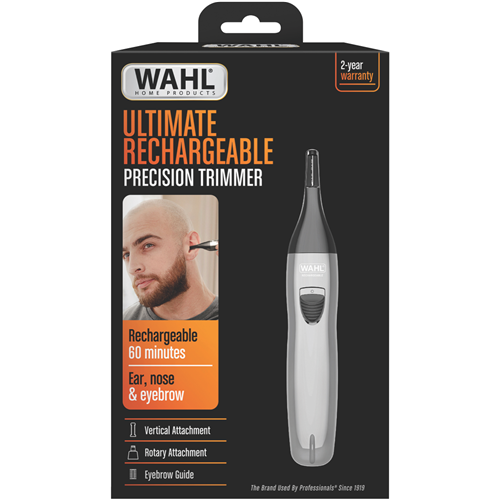 The Wahl Ultimate Precision ear nose and brow rechargeable trimmer is the perfect grooming companion for precise personal trimming needs. This compact all-in-one grooming kit features a vertical trimmer head to easily maintain brows ears and facial hair. The detachable washable attachments ensure effortless cleaning while the integrated eyebrow guide allows you to shape brows with precision. With up to an hour of cordless use from a single charge this versatile electric trimmer provides complete facial grooming on the go. The rotary trimmer head gently removes unwanted hair from ears and nose comfortably. For convenient storage a pouch is included to keep all attachments organized in one place. Backed by a 2 year manufacturer's warranty this precision trimmer delivers reliable trimming performance. Trust Wahl's Ultimate Precision trimmer to keep your brows ears and facial hair neatly groomed anywhere anytime. Order the Ultimate Precision grooming kit today for precise personal trimming when it suits you.