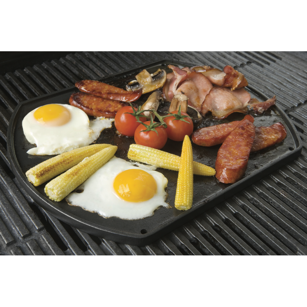 Deliver the ultimate breakfast experience with the Weber Q Classic Breakfast Plate the perfect addition to your Weber Q barbecue. Crafted from quality cast iron with a sleek black enamel coating this versatile hotplate transitions seamlessly from traditional grilling to breakfast sizzling. With a flat side to barbecue meats vegetables or anything you crave simply flip to the ribbed side to grill bacon eggs pancakes and more for unforgettable weekend brekkies. The easy to wash finish minimizes mess and maintenance. For delicious breakfasts and versatile barbecue grilling the Weber Breakfast Plate enhances any Weber Q grill. Premium cast iron construction ensures lasting performance and quality cooking results while the sleek enamel coating prevents rusting. The simple yet functional design caters to all your outdoor cooking needs. Make your Weber Q shine and take your grilling game to new levels with the Weber Q Classic Breakfast Plate. Breakfasts and barbecues will never be the same again. The manufacturer's part number for this product is 93395.