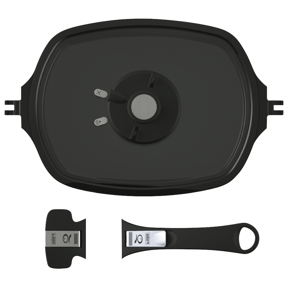 Bring the signature Weber charcoal grilling experience to your patio with the Weber Q Classic Ware Casserole Dish Small. This versatile barbecue pan features a 17635 Teflon non-stick surface making it easy to cook up sausages stir fries seafood and more without food sticking. With a glass lid included you can lock in heat and moisture for tender juicy results. The addition of two removable handles allows for safe transport to and from the grill. Sear scallops to perfection or roast vegetables with ease thanks to the even heat distribution of the Weber Q. Measuring 300 x 265 x 65mm and weighing 1kg this dish pan integrates seamlessly with Weber Q 1000 and 2000 models. The manufacturer's part number for this product is 17635. Make the most of your Weber Q with the Weber Q Classic Ware Casserole Dish Small today.