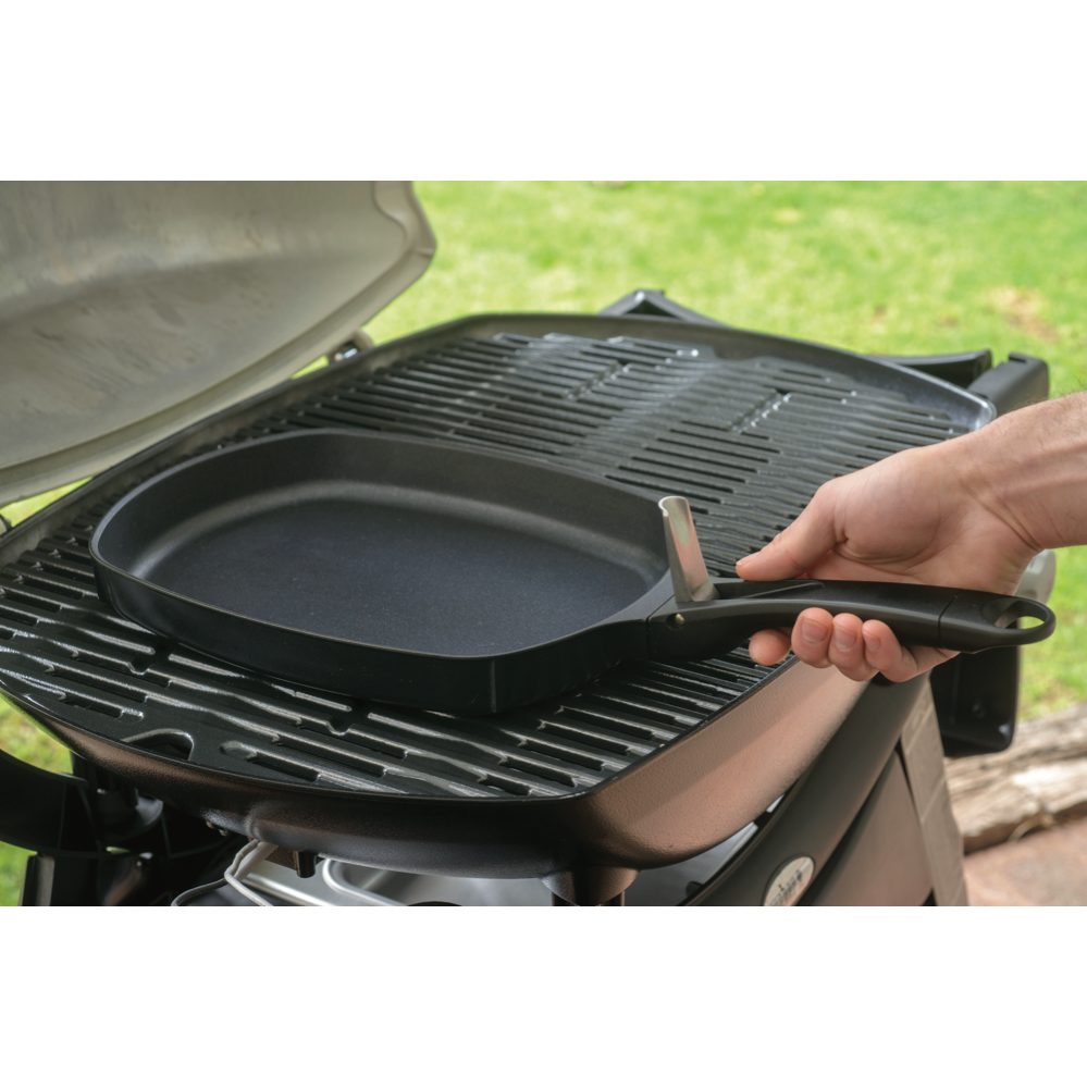 The versatile Weber Q Classic Ware Small Fry Pan is an essential addition to your barbecue toolkit. This lightweight frying pan features a detachable handle for easy storage and cleaning. Its platinum Teflon coated surface makes cooking and cleanup a breeze. With its compact size you can fry up everything from eggs to veggies right on your Weber Q grill. The small fry pan gives you an extra cooking surface to whip up sides breakfast or a single portion meal. Simply place it directly or indirectly on the grill while prepping your main dish. The durable construction and nonstick surface allow you to cook and flip with ease. Enjoy the convenience of grilled favorites like frittatas pancakes bacon home fries and more. The detachable handle enables thorough cleaning and space-saving storage. This innovative fry pan expands your Weber Q's capabilities. Unleash your creativity to grill up fresh sides and small meals on the BBQ. The manufacturer's part number for this product is 991154.