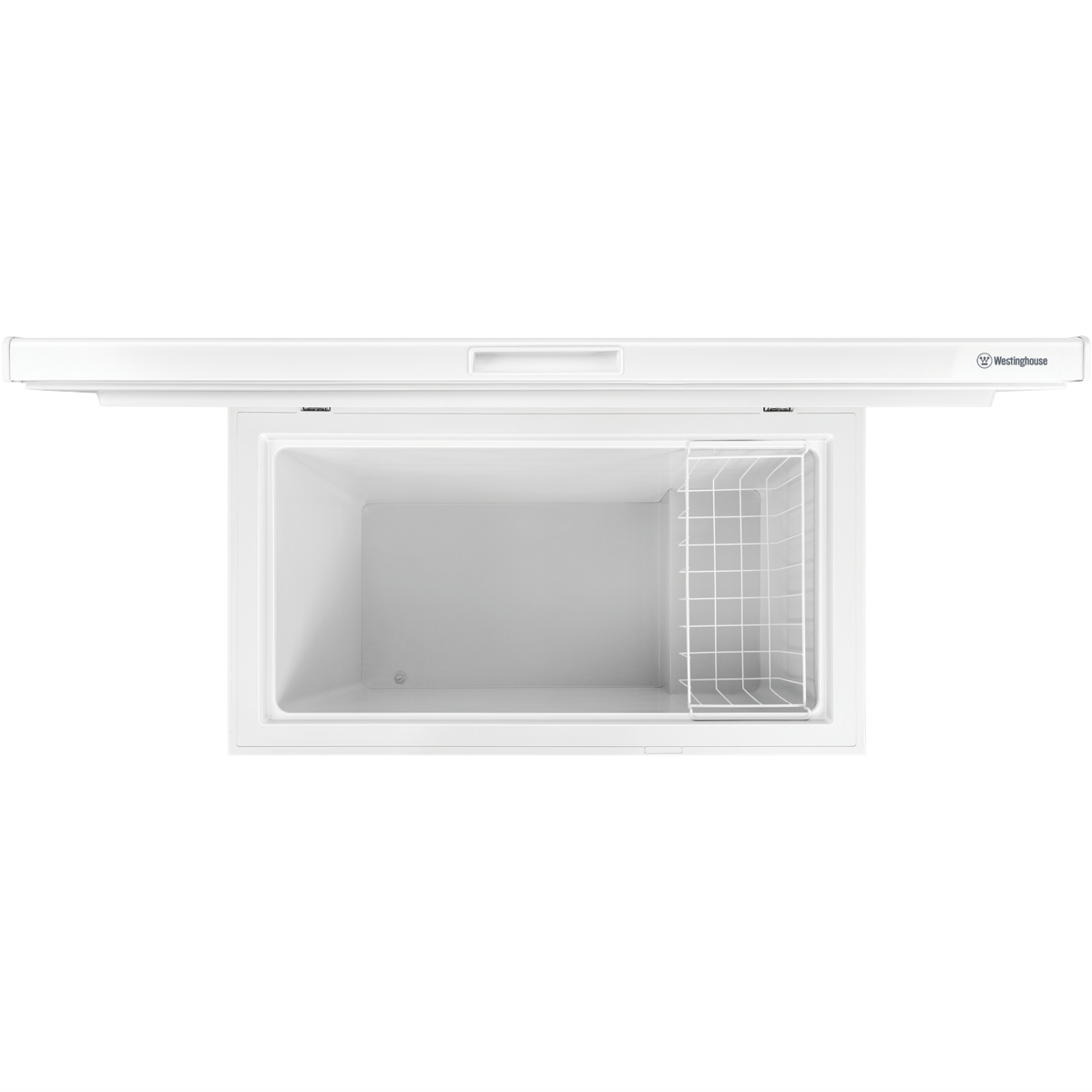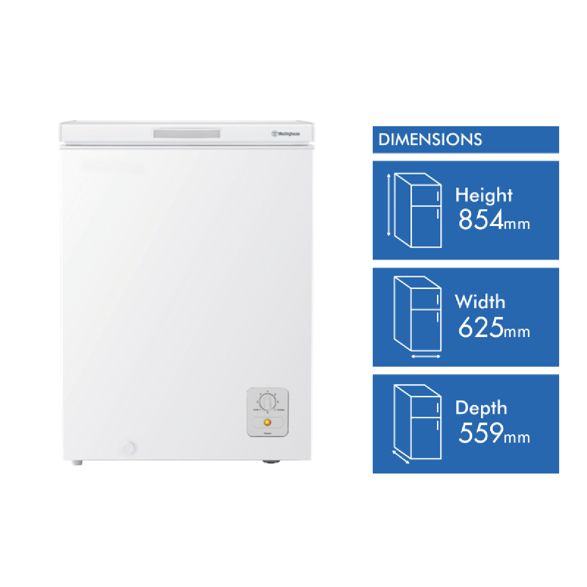 Keep your food fresh and frozen with the Westinghouse 145 Litre Chest Freezer. With its spacious 145 litre capacity this top-opening freezer provides ample storage for all your frozen foods. The quick chill function rapidly cools warm items to lock in freshness. The white inner liner and removable basket provide convenient organization. Adjustable legs allow you to level the unit on uneven surfaces while the recessed handle and ultra thin hinge lend a sleek integrated look. Stay energy efficient with the 4 star energy rating. Mechanical controls and power-off protection allow simple operation and peace of mind. Extend the life of your freezer with the durable white finish. The manufacturer's part number for this product is WCM1400WE. Discover how the Westinghouse 145L Chest Freezer can simplify your frozen storage needs today.