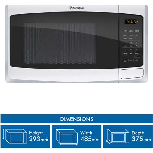 This compact Westinghouse 23L 800W microwave in crisp white is designed to fit seamlessly into any kitchen. With 10 variable power levels touch controls and a generous 23 litre capacity you can quickly and easily defrost reheat or cook a variety of foods. The 270mm glass turntable accommodates larger dishes while the child lock provides extra peace of mind. Other useful features include a memory function to save your favourite cooking times and a handy kitchen timer. Measuring 48cm wide 29cm high and 37cm deep it's an ideal size for apartments or smaller kitchen spaces. The sleek white finish looks great in any décor. With a 1 year warranty from Westinghouse you can cook and reheat with confidence every day. The manufacturer's part number for this product is WMF2302WA. Bring home simple speedy cooking with this microwave today.