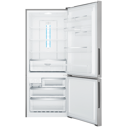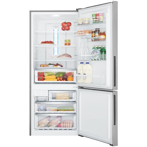 Bring home the stylish and spacious Westinghouse 425L Bottom Mount Refrigerator to keep your food fresh for longer. With its bottom freezer configuration this fridge offers ample storage for all your chilled and frozen essentials. The generous 425 litre total capacity includes a sizeable 300 litre fridge compartment and a 125 litre freezer providing the flexibility to store everything from produce to party platters. Adjustable glass shelving a crisper drawer and door storage make it easy to organize the interior to suit your needs. Features like the FlexStor door storage system SpillSafe shelves a twist ice dispenser and LED lighting ensure this refrigerator offers convenience along with capacity. The multi-flow air delivery system maintains optimal temperature control and quick chill functionality enables rapid cooling when required. Finished in an elegant Arctic Silver this refrigerator will complement your kitchen beautifully while providing the storage and performance you need. The manufacturer's part number for this product is WBE4302AC-R. Discover how this quality Westinghouse refrigerator can upgrade your household food storage today.