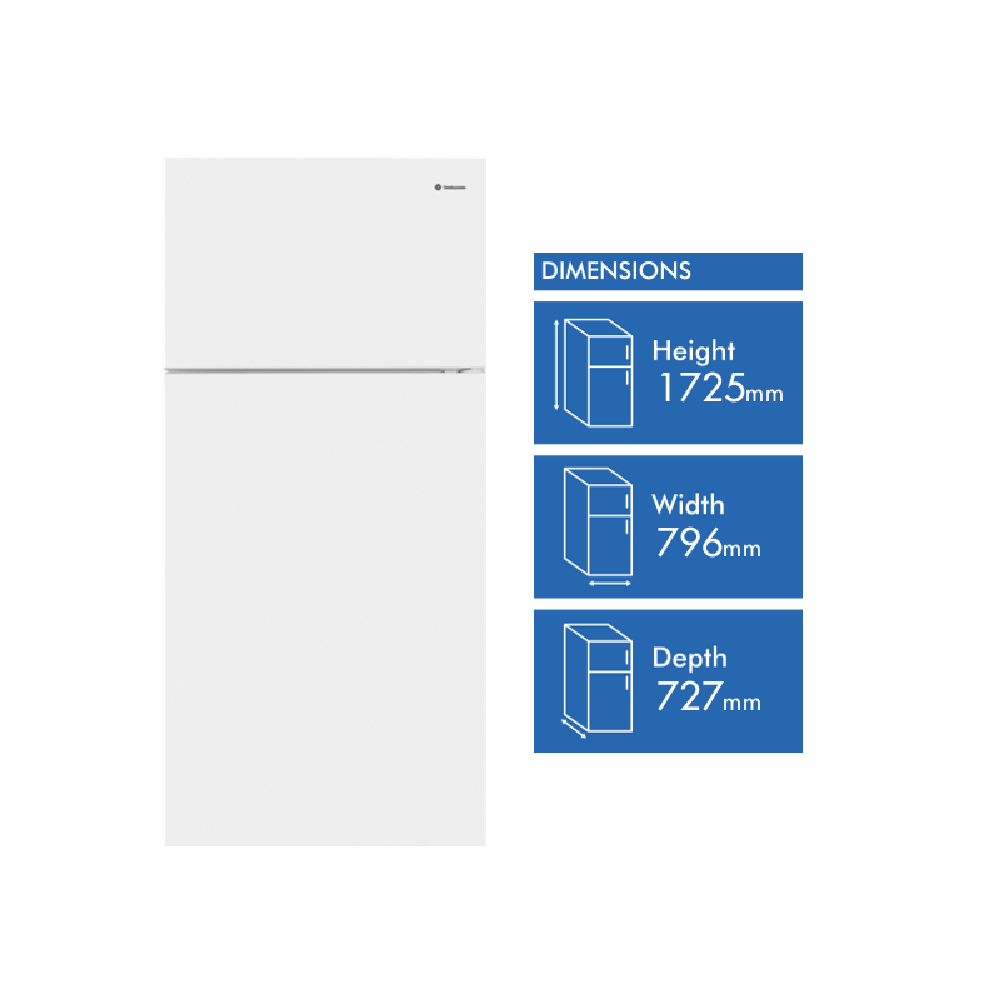 This Westinghouse Top Mount Fridge keeps food fresh and organized with its spacious 503L capacity. You'll find plenty of room for groceries with 384L in the fridge and 119L in the freezer. The FlexStor adjustable door bins let you customize storage to fit tall bottles or bulky items. Enjoy quick cooling with the handy chill function and keep fruits and veggies crisp in the full-width crisper. The multi-flow air system helps maintain even temperatures throughout. LED lighting makes it easy to see what's inside while the door alarm reminds you if you've left it open. The fridge comes with a sphere ice tray for convenient ice making. It's frost-free so no more manual defrosting. Rear rollers make it easy to move for cleaning. This white fridge measures 796mm wide 1725mm high and 727mm deep. It comes with a 2-year warranty. The model number is WTM5002WE-R.