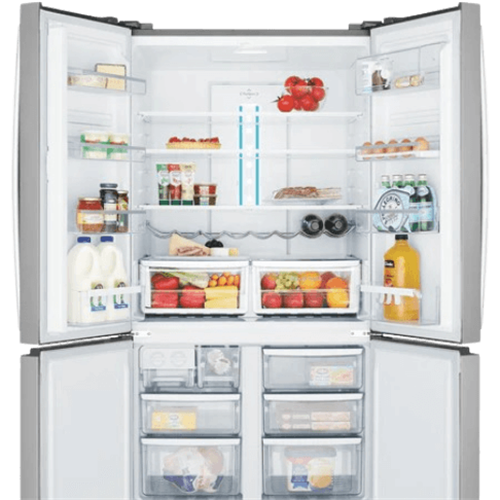 Find your perfect chilling and freezing solution for your food and drinks in the Westinghouse 541L 4 Door French Door Refrigerator (WQE6000SB). Suit your fridge to suit the family the occasion or the season with the FlexStor storage design; you can easily configure and arrange the height and positions of the door bins to fit larger or smaller items. Alongside this storage solutions continue with FlexSpace arrange the shelves and fridge cabin to cater to accessing larger meals or platters of fresh delicious food. The Dual FlexFresh Easy Glide Crispers with humidity control seals tightly to secure the perfect environment to keep your fruit and vegetables fresh and tasty. Spillsafe glass shelves support life's food related accidents by holding up to a litre of liquid this makes cleaning and easier and prevents further spillages onto other food items.