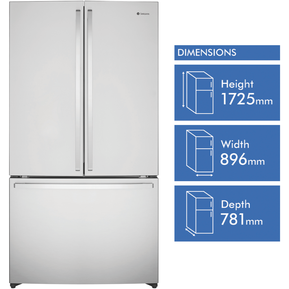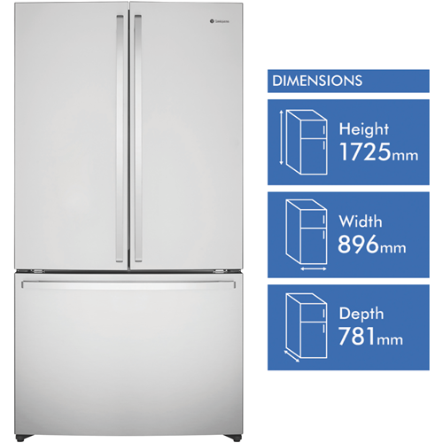 The Westinghouse 565L French Door Refrigerator (WHE6000SB) provides both an elegant design and an outstanding feature to produce a excellent high performing product. The FlexStore design caters to your lifestyle needs by allowing you to rearrange the height and position of the included door bins to fit larger or smaller food items. Also the Dual FlexFresh Easy Glide Crispers contains humidity control functionality to ensure the quality and taste of your favourite fruit and vegetables. Protect all your food items in the fridge from accidents with Spillsafe Glass Shelves this keeps spillages up to 1 litre onto one shelf to minimalize any liquid damage onto other food items. The premium Westinghouse exterior design is created using Fingerprint resistant stainless steel; this prevents dirty or sticky hand marks from being left on the fridge after use.