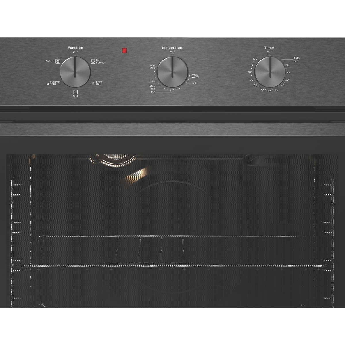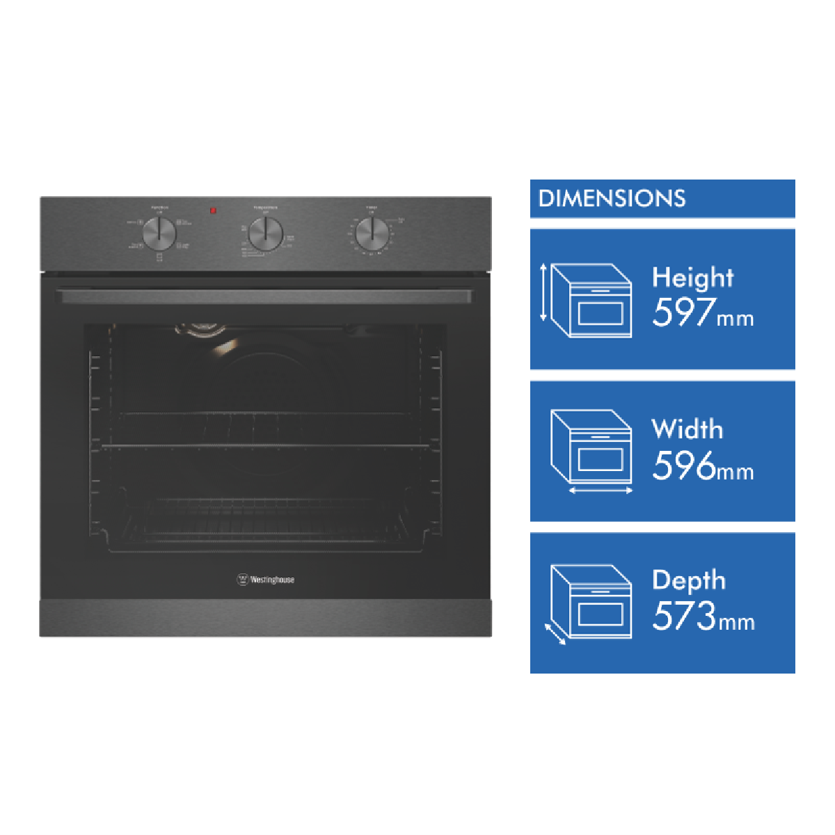 Discover cooking convenience with the Westinghouse 60cm Electric Multifunction Oven. This versatile appliance allows you to prepare delicious home-cooked meals for the whole family. The spacious 72L capacity provides ample room for baking multiple dishes or roasting large cuts of meat. Choose from 5 convenient oven functions like Fan Forced Grill and Defrost. The intuitive control knob and 120-minute auto-off timer make operation a breeze. The sleek Dark Stainless Steel finish lends a modern touch. The multifunction oven features a cool touch door and removable inner glass panes for easy cleaning. It comes equipped with handy accessories like a grill pan wire shelves and side racks. Westinghouse backs this oven with a 2-year warranty so you can cook with confidence. At 60cm wide 597mm high and 573mm deep this electric oven integrates seamlessly into your kitchen. The manufacturer's part number for this product is WVE6314DD. Bring out your inner chef with the Westinghouse 60cm Electric Multifunction Oven.