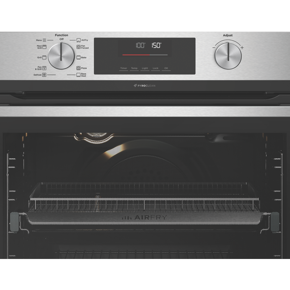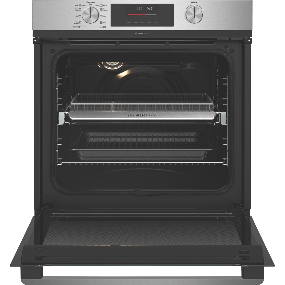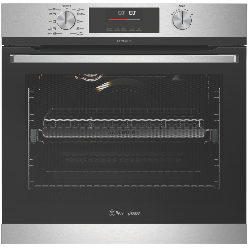 Bring restaurant-quality cooking into your home with the Westinghouse 60cm Fingerprint Resistant Stainless Steel Pyrolytic Oven. With a generous 72L capacity and 10 functions including AirFry this oven has the versatility to be your kitchen's MVP. The fingerprint resistant stainless steel finish keeps your oven looking as good as the first day you bought it. The touch control LED makes operation a breeze. Bake grill defrost and more with the programmable timer - no more guessing when your food will be ready. The included accessories like the AirFry tray help you get the most out of this multipurpose oven. Telescopic runners make inserting and removing trays effortless. Pyrolytic cleaning takes the hassle out of oven maintenance. All you have to do is activate the Pyro Clean function and let the oven do the hard work for you. At 60cm wide 597mm high and 573mm deep this oven will fit most standard kitchen spaces. With a 2 year manufacturer's warranty you can cook with confidence knowing that Westinghouse has you covered. The manufacturer's part number for this product is WVEP6716SD. This oven is the total package for the home chef who wants restaurant results without the hassle.