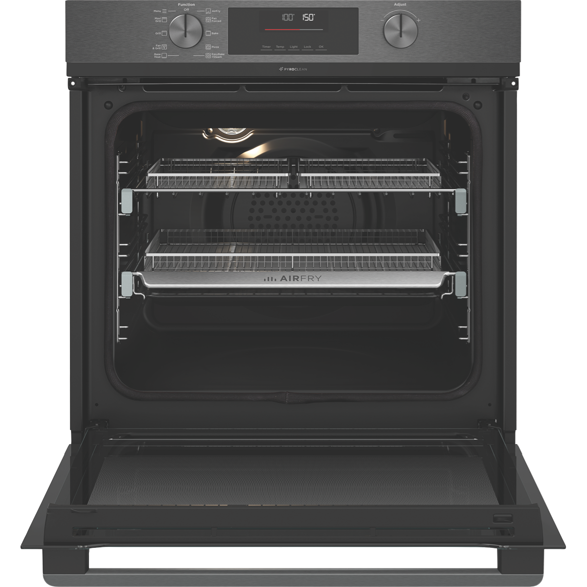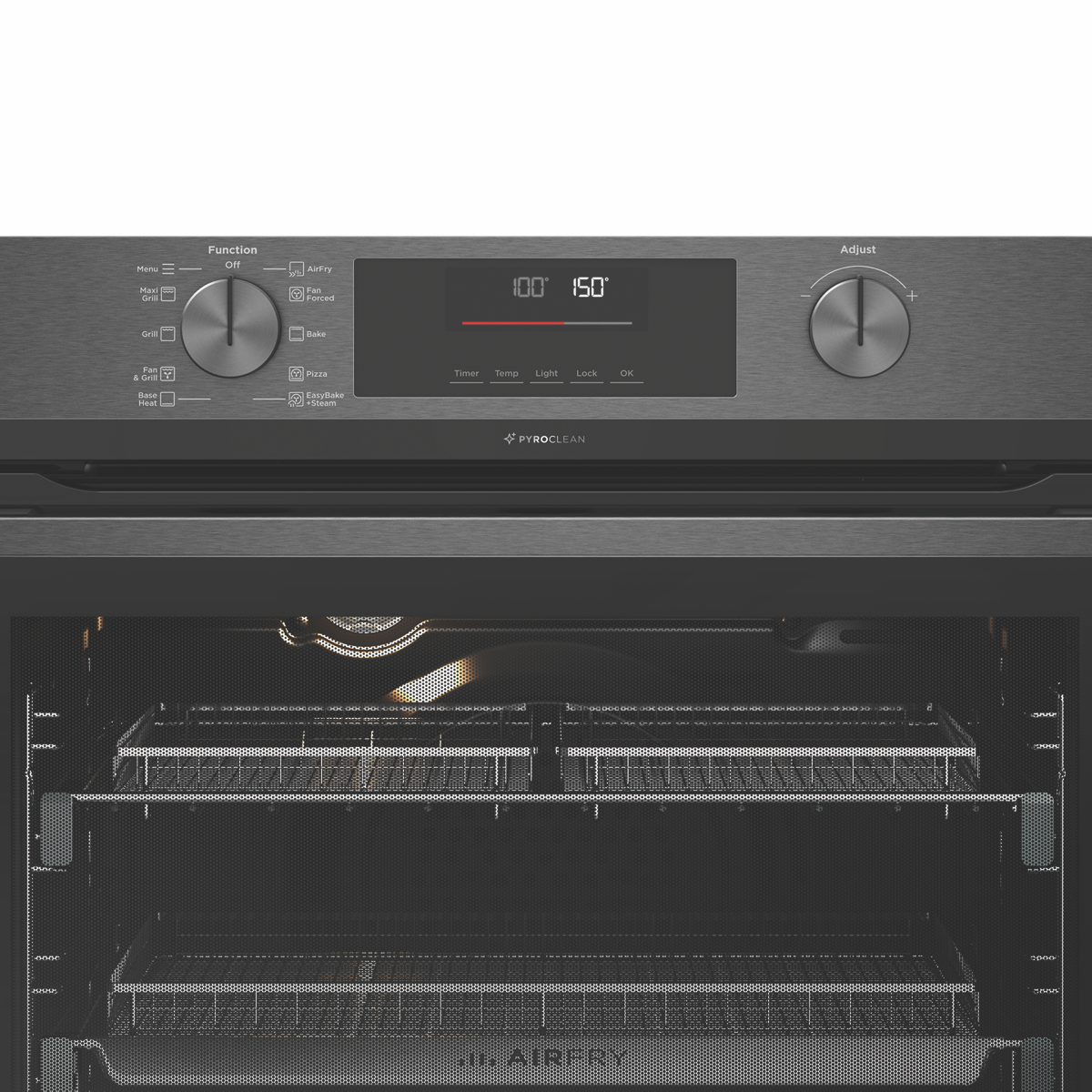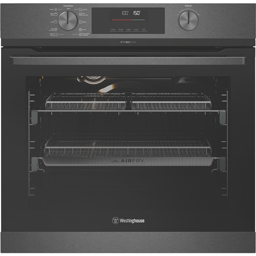 Elevate your cooking with the multifunctional Westinghouse 60cm Pyrolytic Steam Oven. This dark stainless steel electric oven adds a touch of modern style to your kitchen while offering exceptional versatility. With its generous 72 litre capacity you'll have plenty of space to create delicious family meals and entertain guests. Choose from 10 functions like traditional baking AirFry pizza rapid heat grill and more. The combination of fan forced cooking and steam infuses moisture for ridiculously tender roasts juicy casseroles and perfectly risen breads. The handy built-in timer allows you to cook hands-free. The cool touch door with 4 layers of glass ensures added safety. This Westinghouse steam oven comes equipped with a range of accessories like chrome shelves a baking tray grill insert and more to maximise your cooking potential. The easy-clean pyrolytic function reduces food spills to a fine ash for swift oven cleaning. With a 2 year manufacturer's warranty you can purchase with confidence. Unlock your inner chef and take your cooking to new heights with the Westinghouse 60cm Pyrolytic Steam Oven. The manufacturer's part number for this product is WVEP6717DD. Discover how this versatile steam oven can make meal prep efficient and enjoyable for your household.