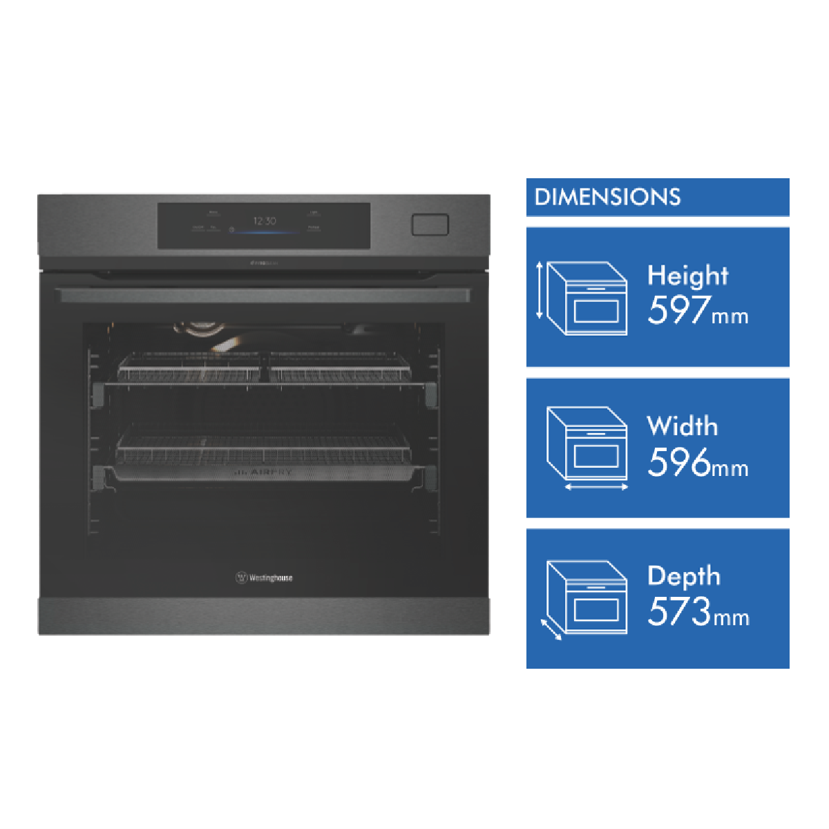 • 2 shelves, 5 positions, touch controls, programmable timer