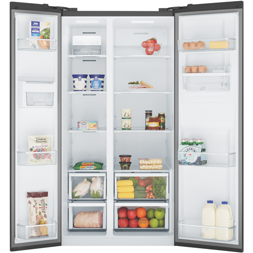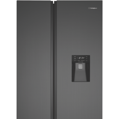 For a stylish and spacious fridge that simplifies your food storage look no further than the Westinghouse 619L Side By Side Refrigerator. This matte charcoal black fridge blends into any modern kitchen with its sleek flat doors and integrated handles. With a total capacity of 619 liters you'll have ample room for all your fresh and frozen foods. The 402-liter fridge capacity features SpillSafe glass shelves a fast chill function and an egg tray so you can organize fruits vegetables drinks and more. The 217-liter freezer capacity includes two icemakers and a fast freeze function to lock in freshness. Electronic touch controls and LED lighting provide convenient access and visibility. Plus this energy efficient fridge is rated an impressive 4.5 stars so you'll save on electricity bills. Water dispenser holiday mode and 2-year warranty add even more value. Bring stylish spacious refrigeration into your home with the Westinghouse 619L side by side fridge. The manufacturer's part number for this product is WSE6640BA.