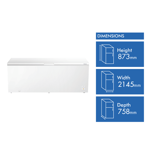 Keep your food fresh for longer with the spacious Westinghouse 702L White Chest Freezer. Featuring a top opening lid this freezer offers easy access and ample storage with its 702 litre capacity interior. Maintain an efficient temperature thanks to the quick chill function that rapidly cools to the optimum temperature after the lid has been opened. The removable high insulation door seal and hovering door design work to prevent cold air leakage and heat transfer for optimal freezing. Organize your frozen goods with the inclusion of two removable baskets that allow you to separate and sort items. Additional handy features like the recessed handle ultra thin hinges adjustable legs and power-off protection all contribute to a freezer that is convenient and reliable for daily use. Rest assured that your food is safely frozen with the R600a refrigerant and white inner liner. Covered by a 2 year manufacturer's warranty this chest freezer is built to last while providing ample 702 litre storage. The manufacturer's part number for this product is WCM7000WE. Take advantage of the large capacity and energy efficiency of the Westinghouse 702L Chest Freezer today.