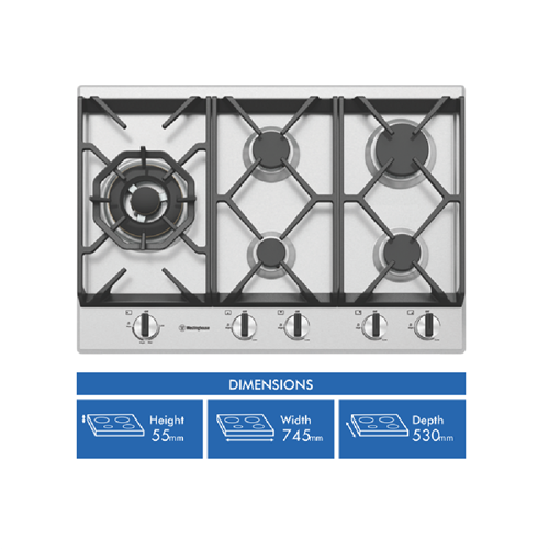 Westinghouse 75cm S/S Gas Cooktop